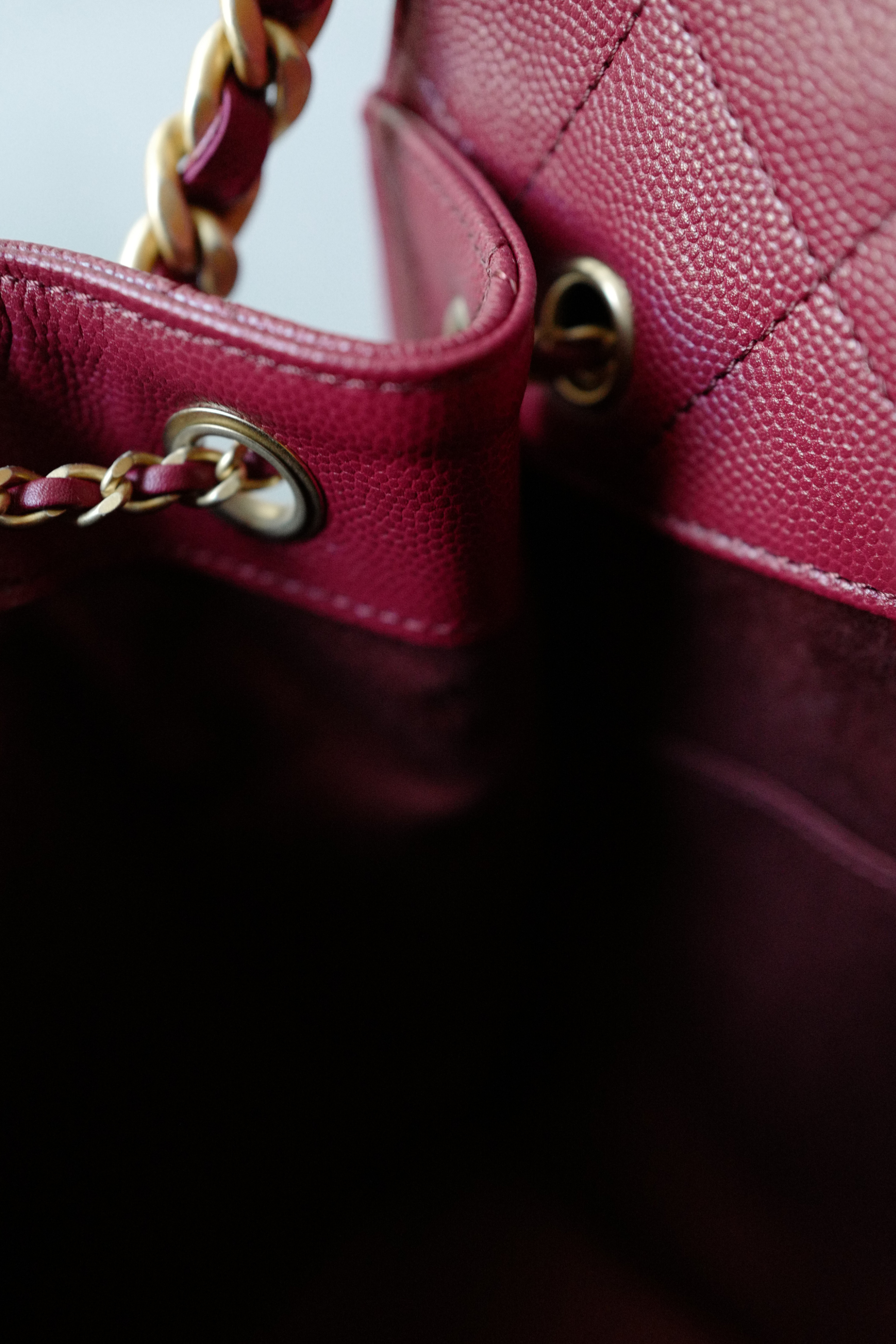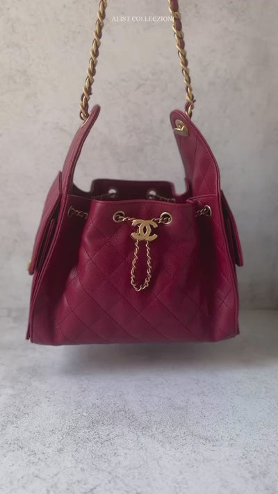 Part of the Chanel 25K collection, this Small Hobo Bag reflects understated luxury and modern femininity. The combination of deep red leather and gold accents creates a timeless statement piece that captures the essence of Chanel’s iconic style — chic, versatile, and effortlessly elegant.