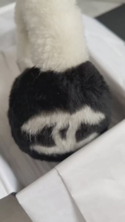 BNIB Chanel 25N Coco Neige Shearling Earmuffs in Black and White