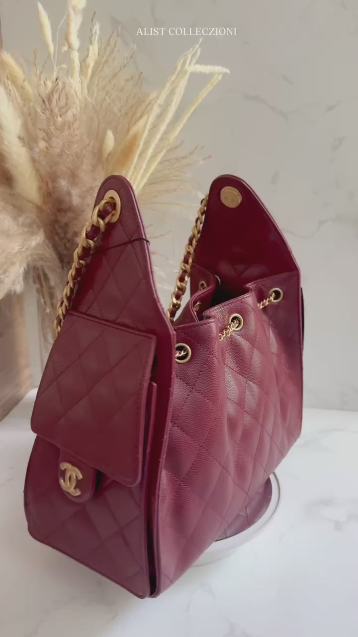 BNIB CHANEL Spring-Summer 25S Small Hobo Bag Grained Calfskin Burgundy GHW