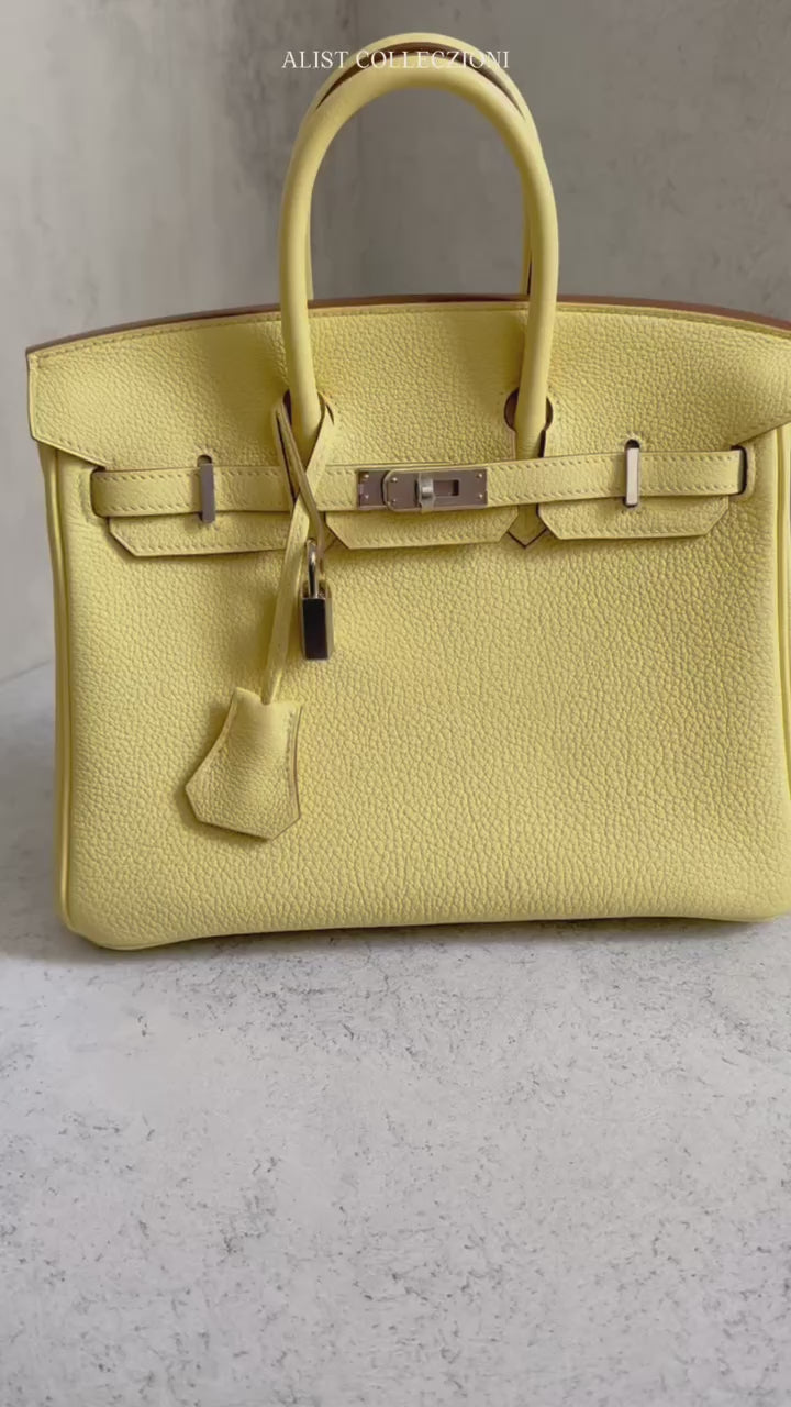 BNIB Hermès Birkin 25 Bag Jaune Poussin Togo Leather Palladium Hardware Stamp W