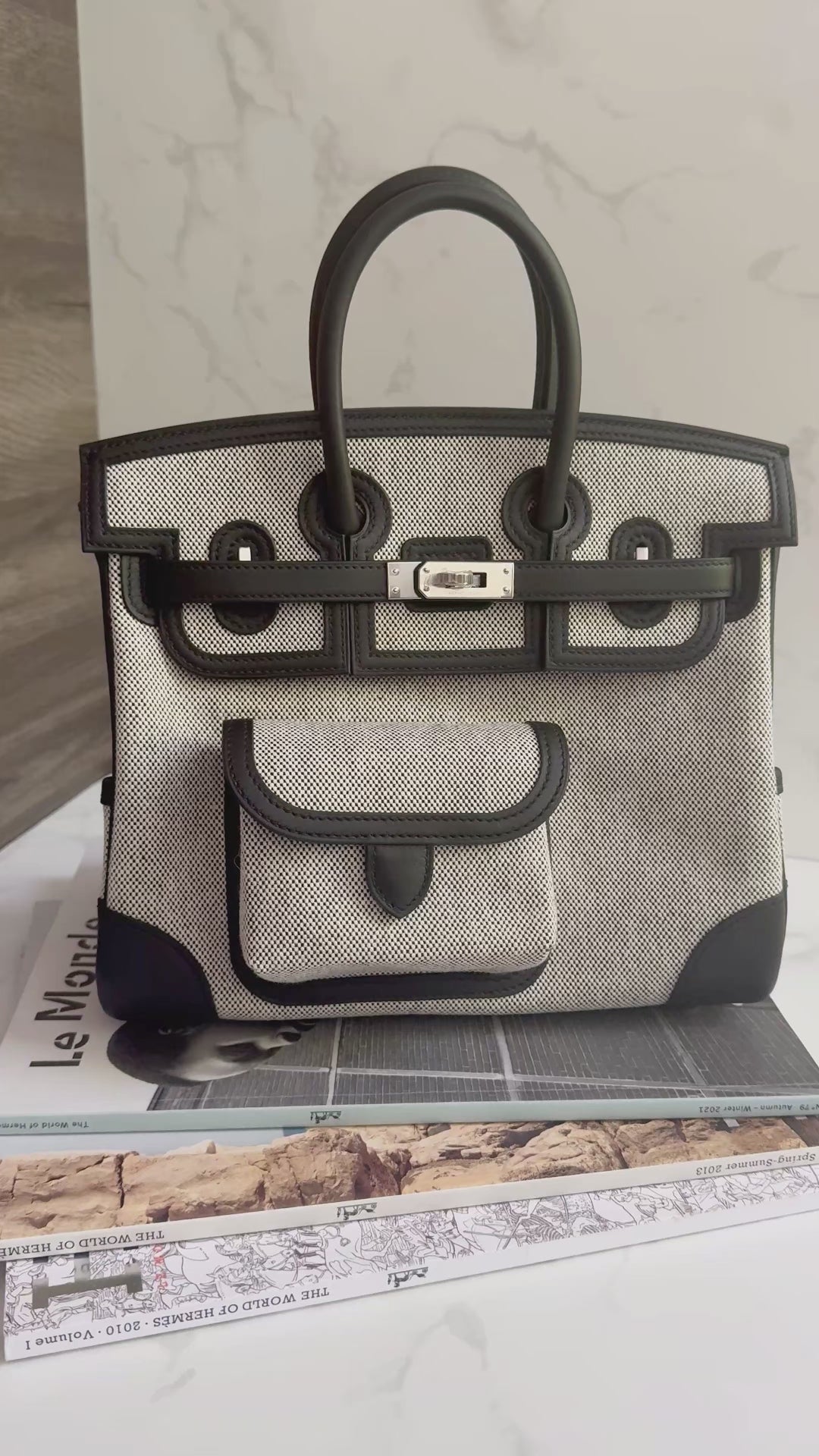 BNIB HERMÈS Birkin Cargo 25 Toile H/Veau Swift Ecru Noir/Noir PHW W Stamp 2025