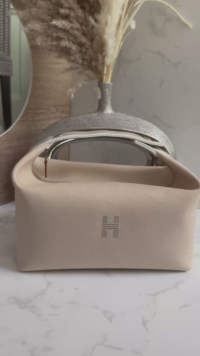 The Hermès Bride-a-Brac Toiletry Case (Large) is a refined everyday essential, designed by Hermès Studio with both utility and elegance in mind. Crafted from durable 100% cotton canvas and lined in signature herringbone cotton, it features three interior pockets for effortless organization. The versatile polycotton strap allows for multiple closure and hanging options, while the embroidered "H" motif adds a subtle heritage touch.