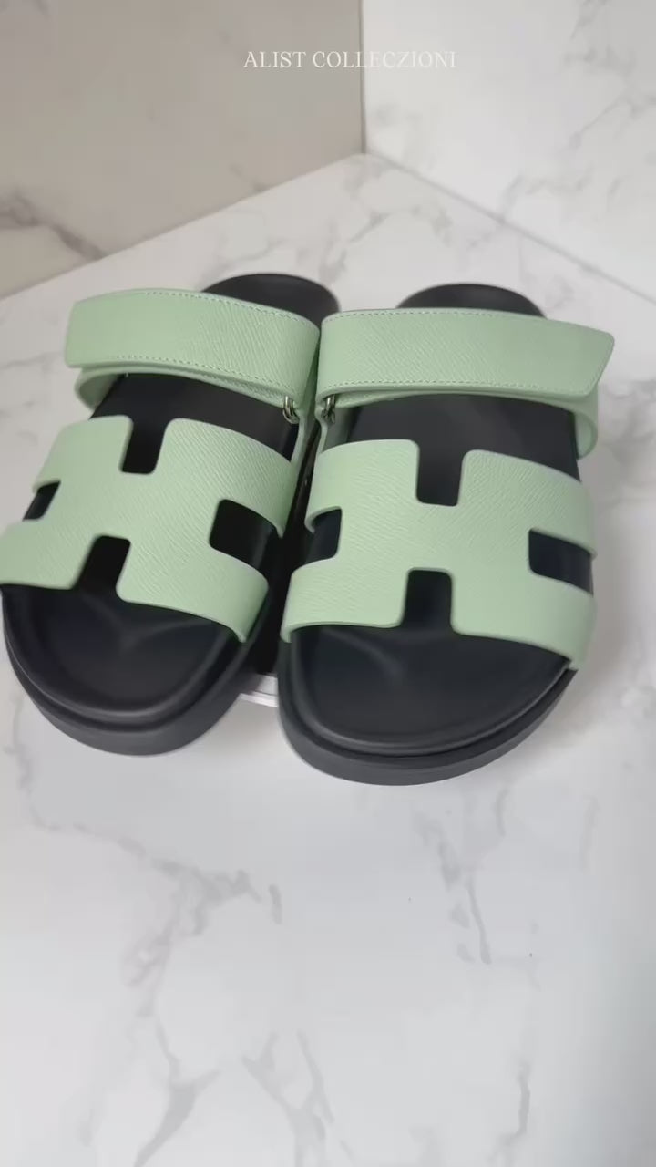 Elevate your casual style with the Hermès Chypre Sandals in Vert Jade. Crafted in Italy from supple calfskin leather, these sandals feature a fresh jade green tone that adds a modern, versatile touch to any wardrobe. The soft leather finish reflects Hermès’ signature craftsmanship and timeless luxury.