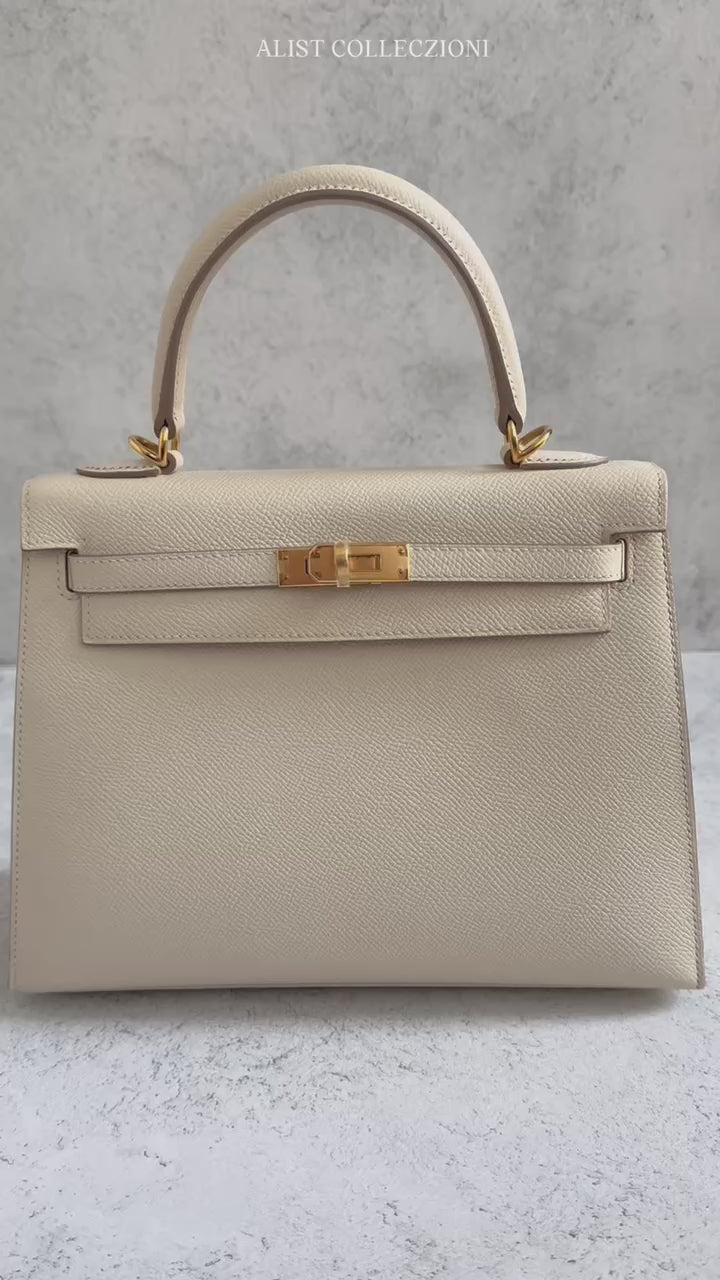 The Hermès Kelly 25 Sellier in Craie Epsom leather with gold hardware is an elegant and timeless piece from the Maison’s most iconic collection. The Sellier construction gives the bag a structured silhouette with clean lines, while the Craie shade—an off-white chalk tone—adds sophistication and versatility, making it suitable for both day and evening wear.