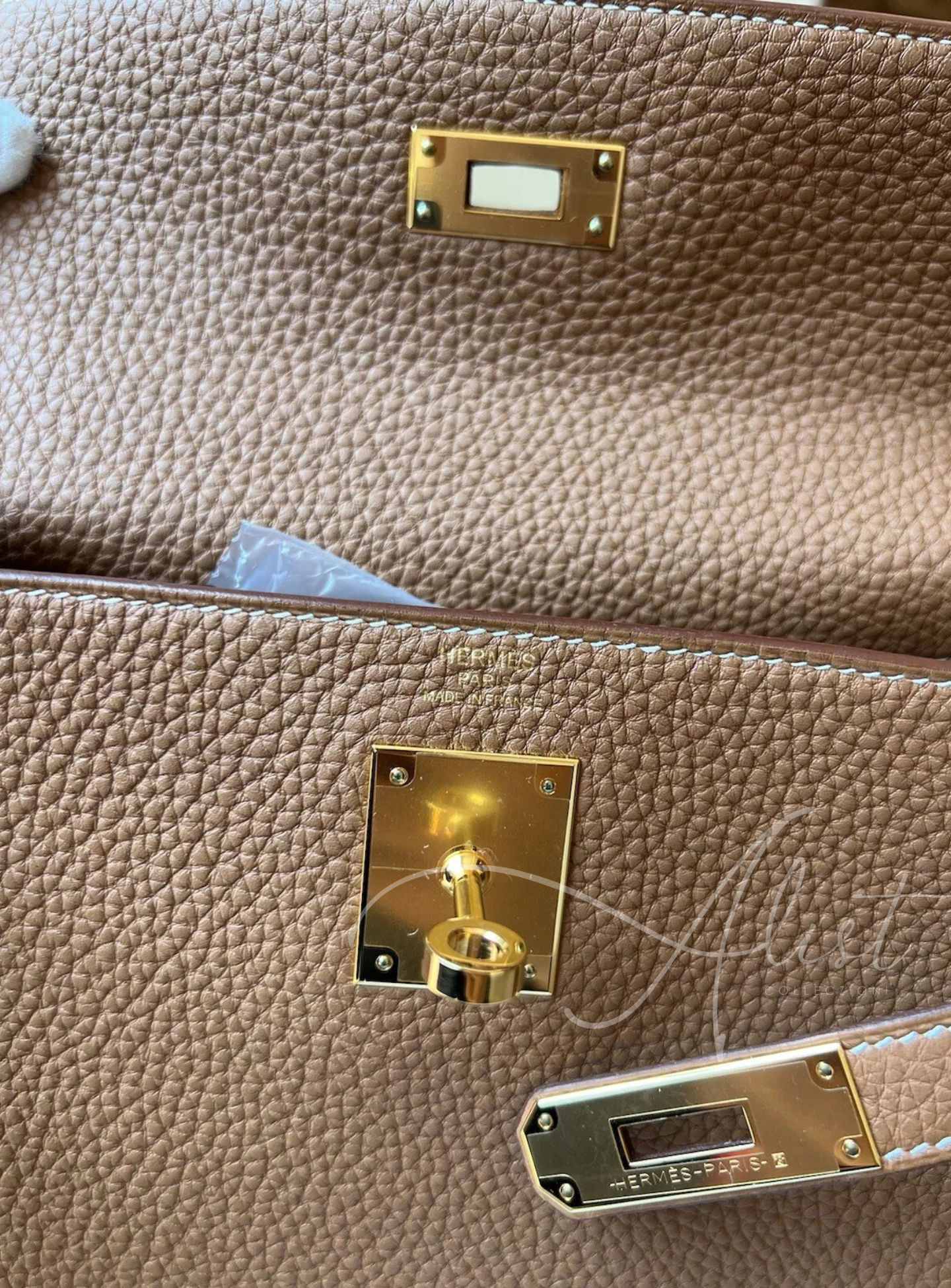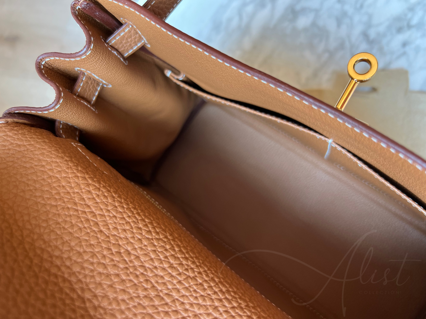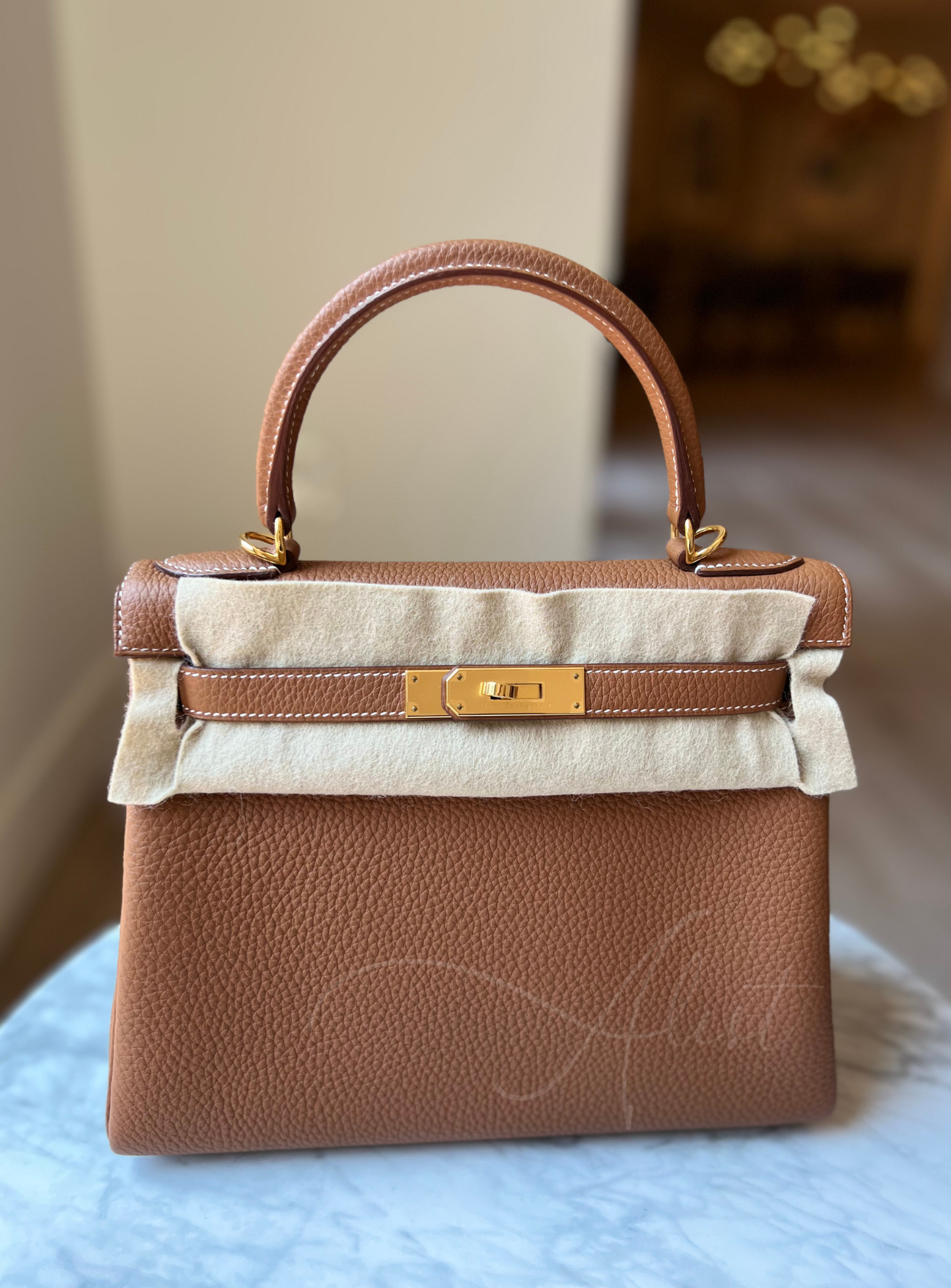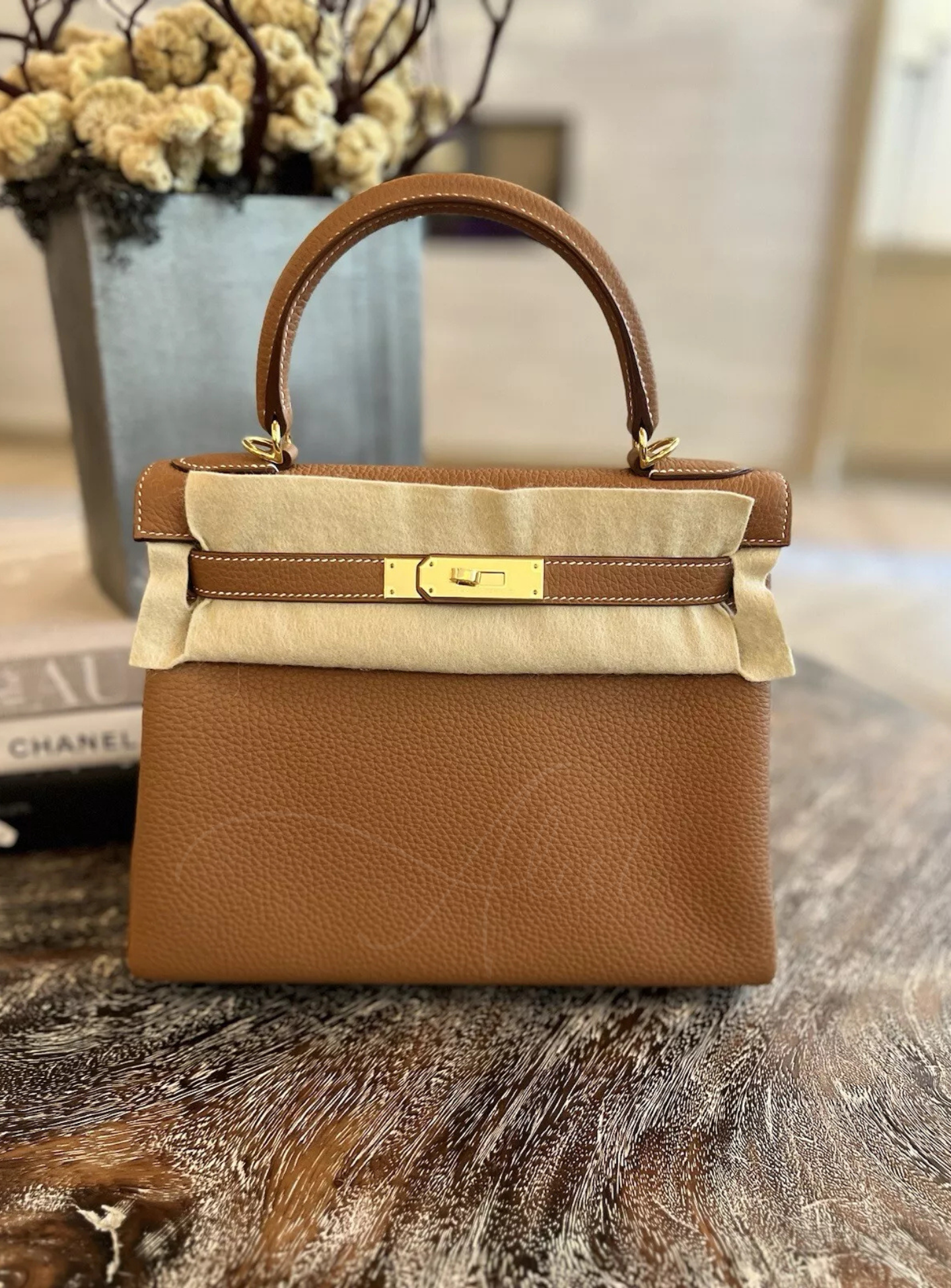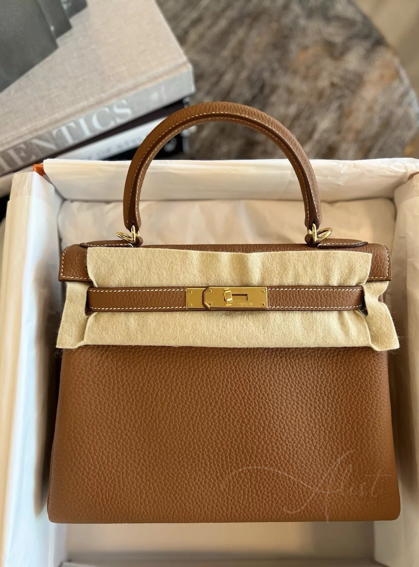And for a Kelly 28 in Classic Hermes Gold color, in contrast white stitching with gold hardware, this is a truly beautiful statement piece and such a gorgeous neutral bag as well!!