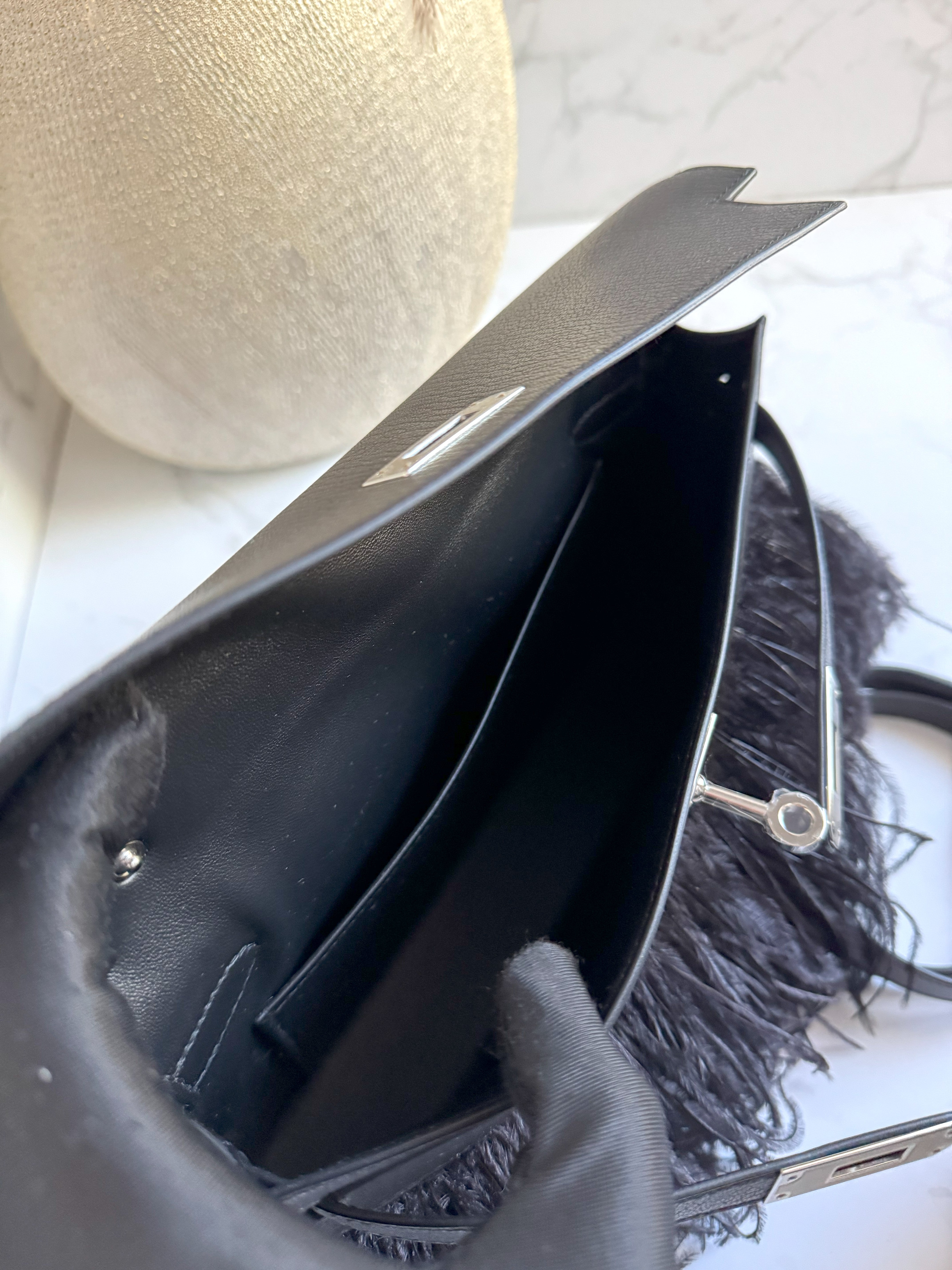 BNIB Hermes Kelly Elan Folie Black In Chevre Leather & Ostrich Feathers PHW