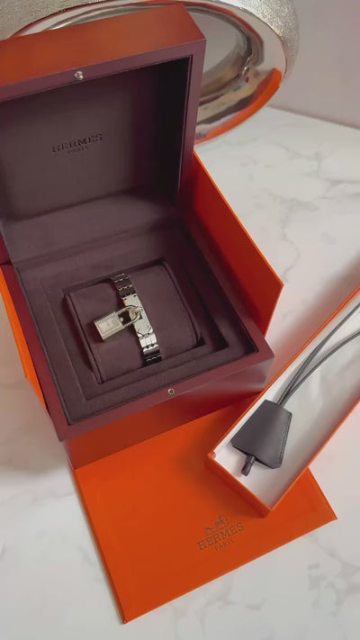 BNIB Hermes Kelly Watch Mini Model, 16 mm, Diamond Stainless Steel Bracelet