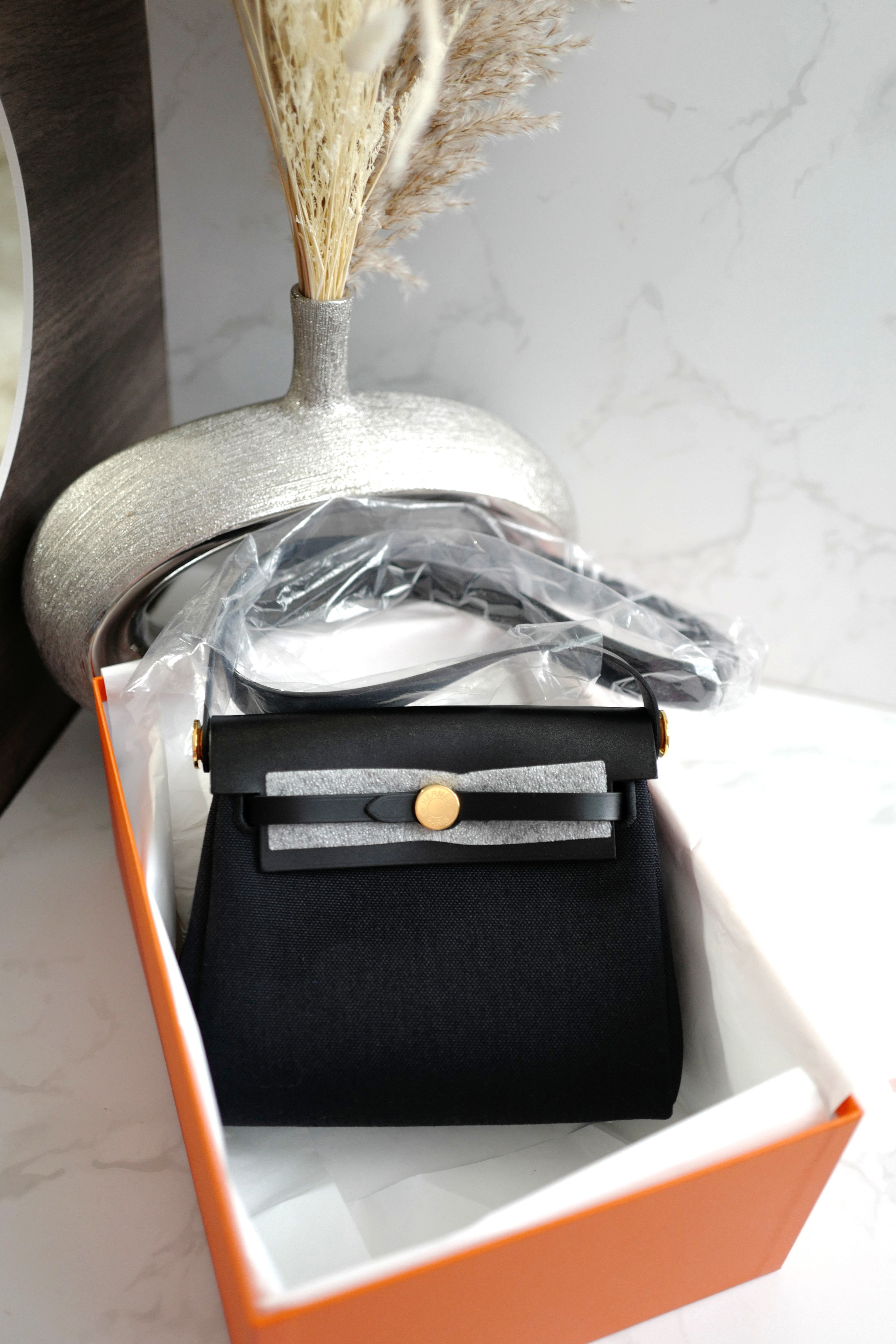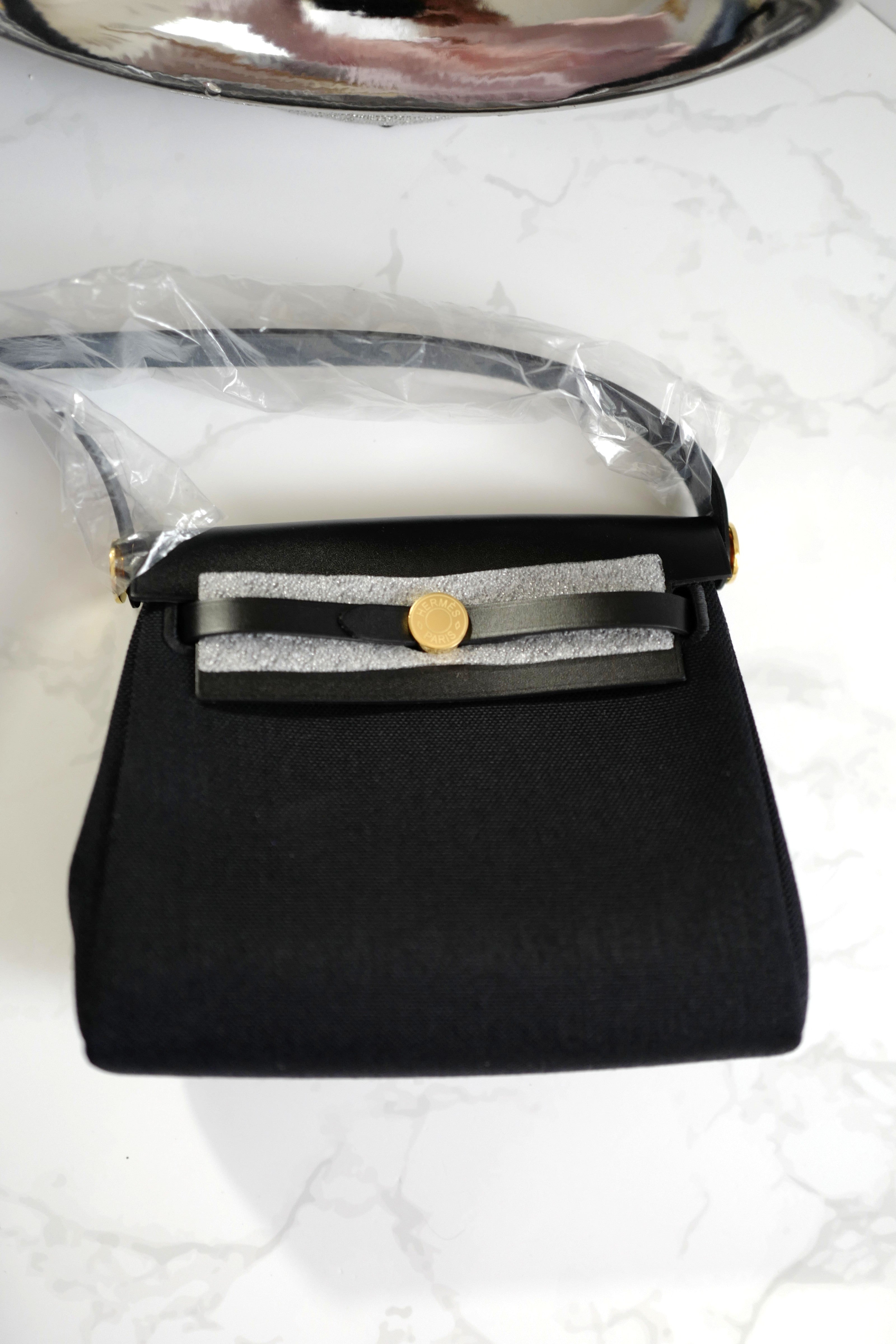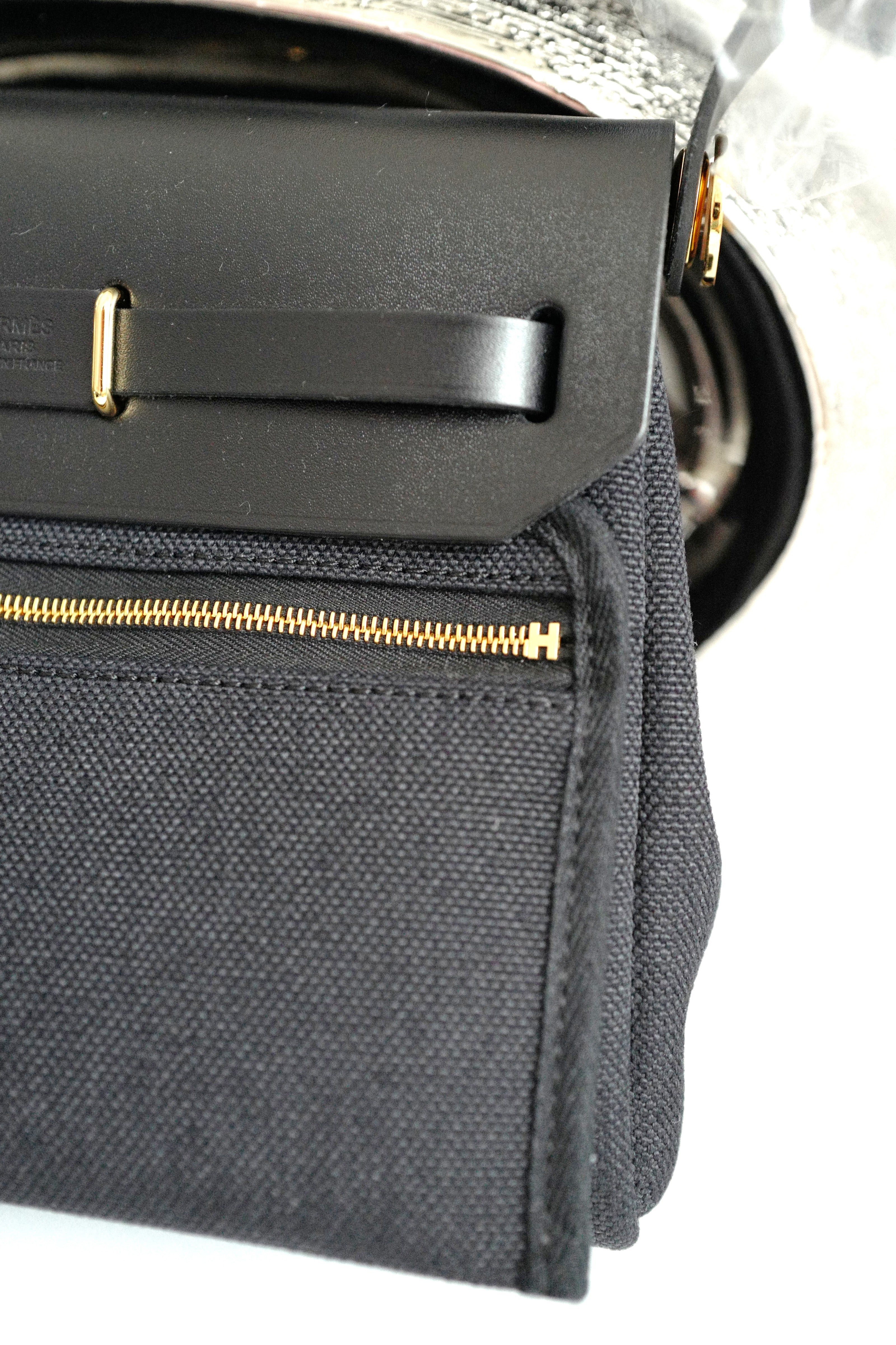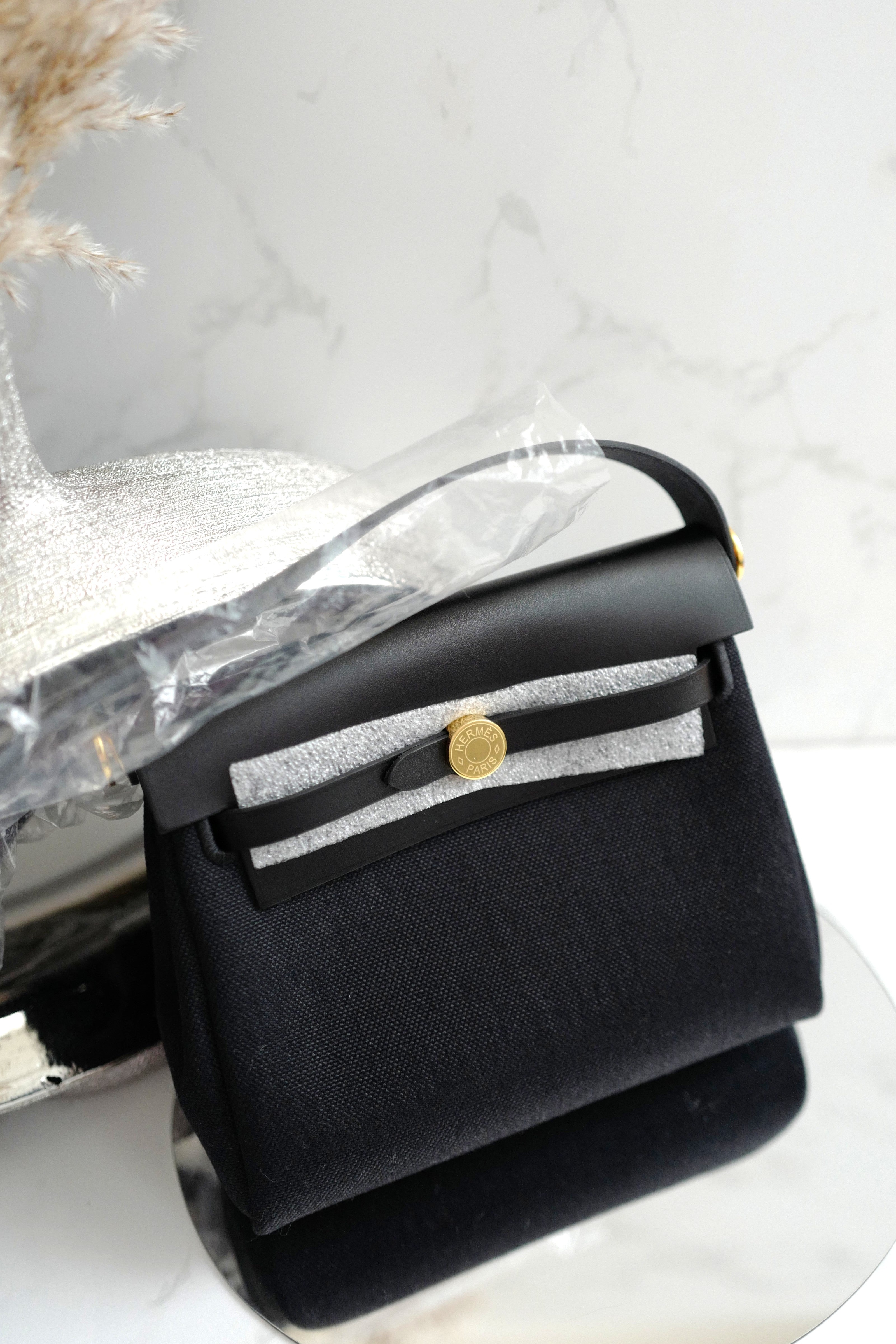 BNIB Hermes Mini Herbag Black / Black in Gold Hardware