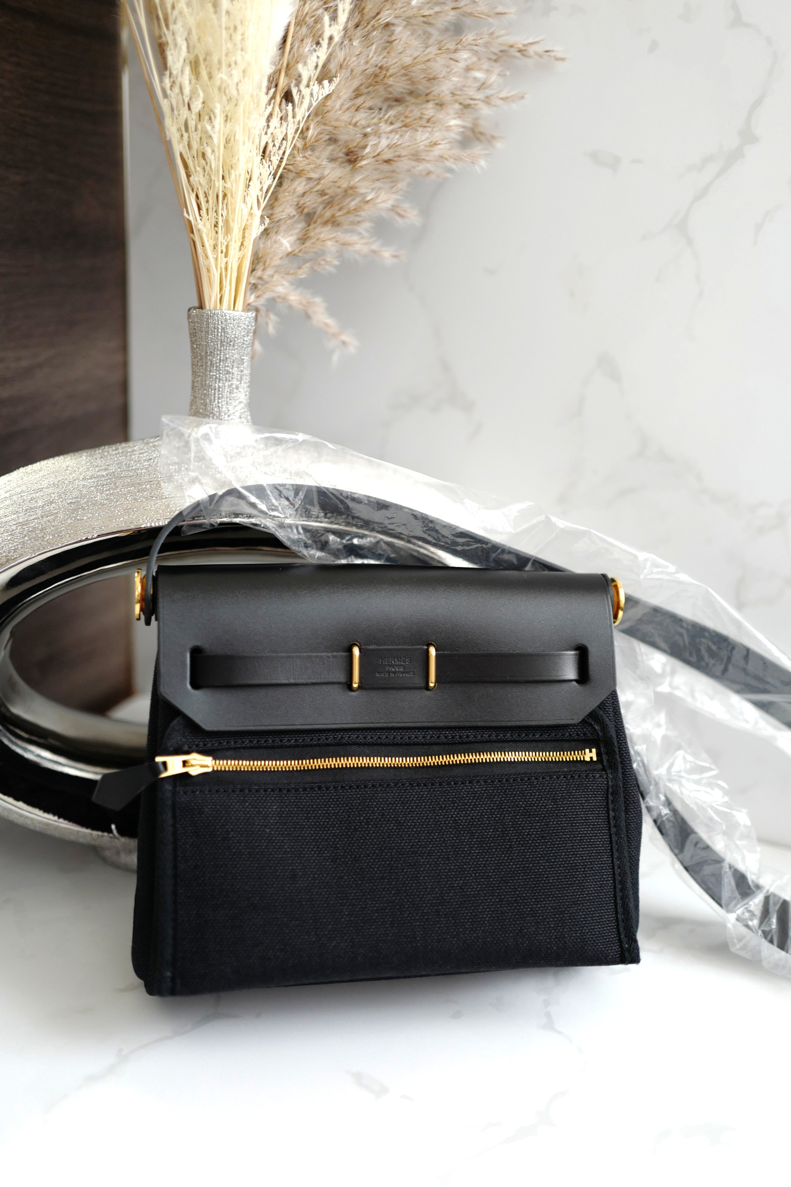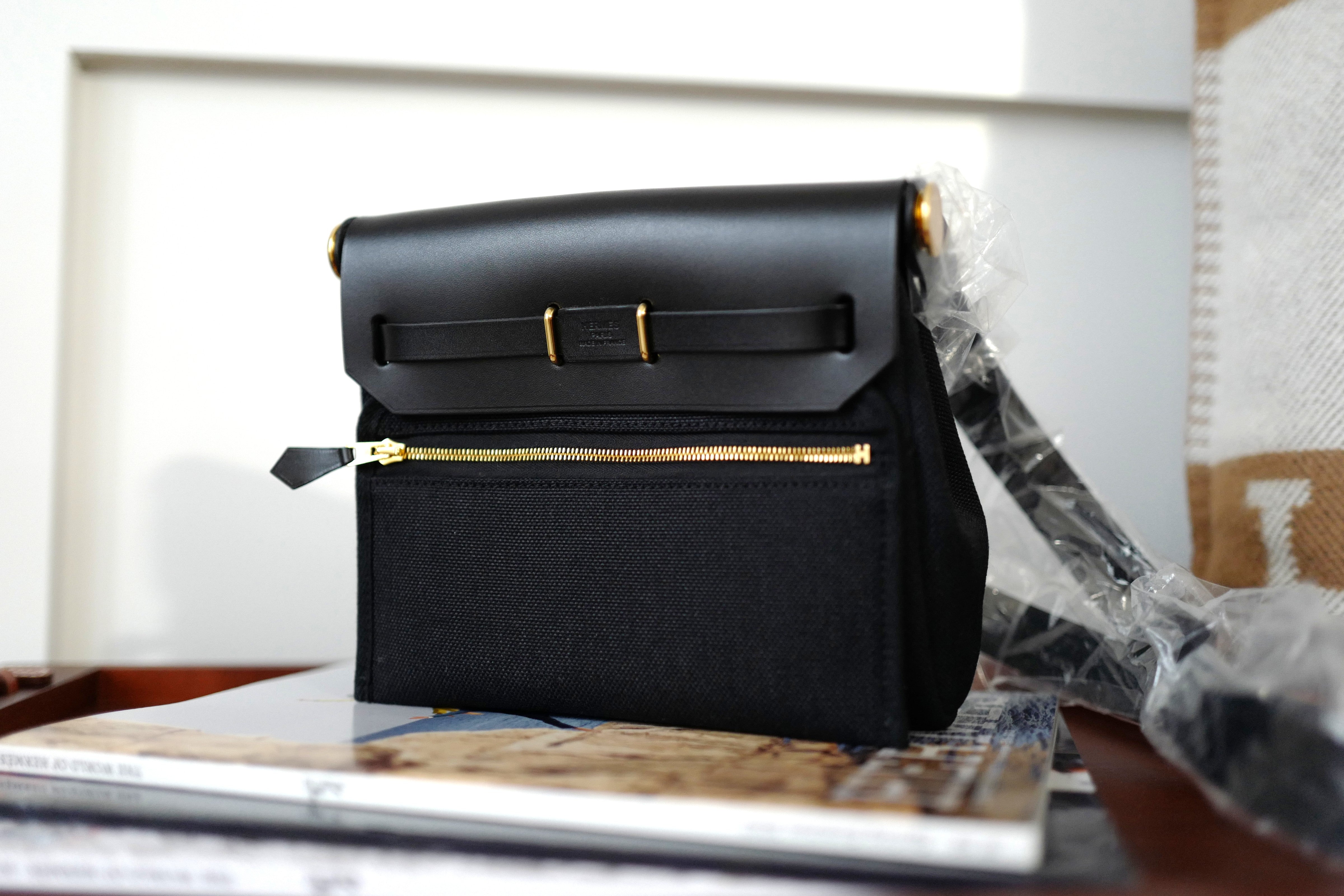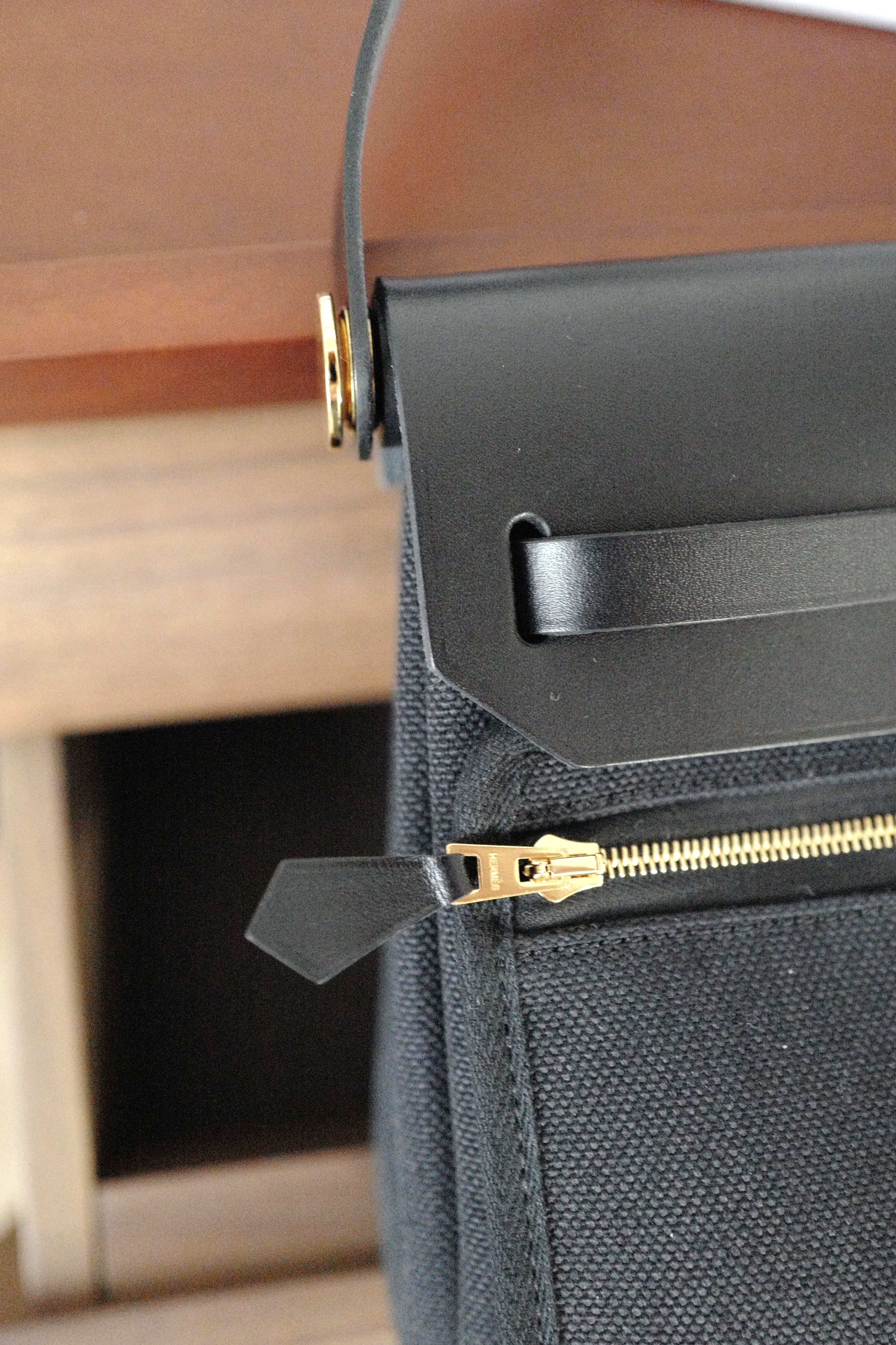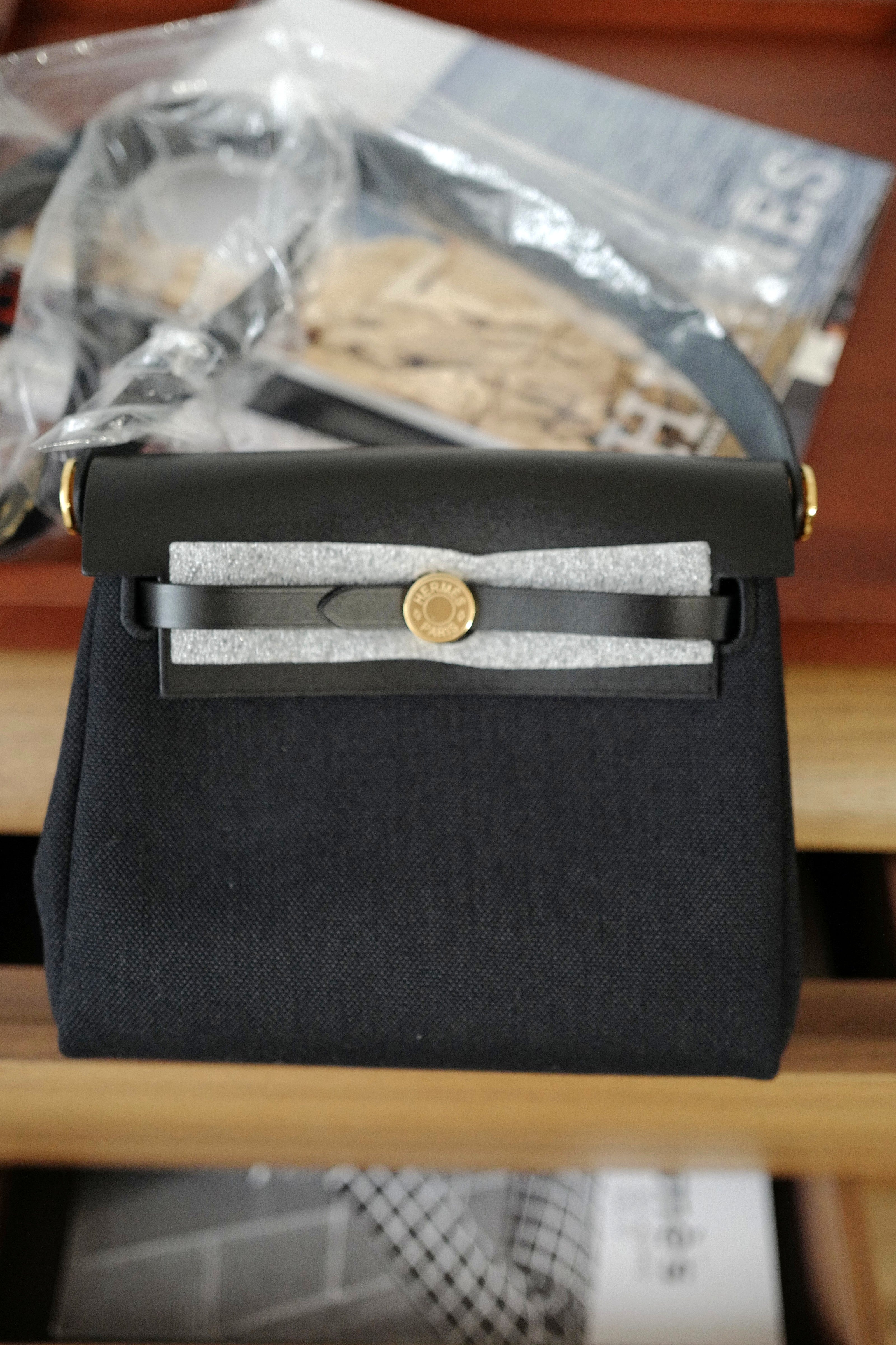 Hermes Mini Herbag Black / Black in Gold Hardware