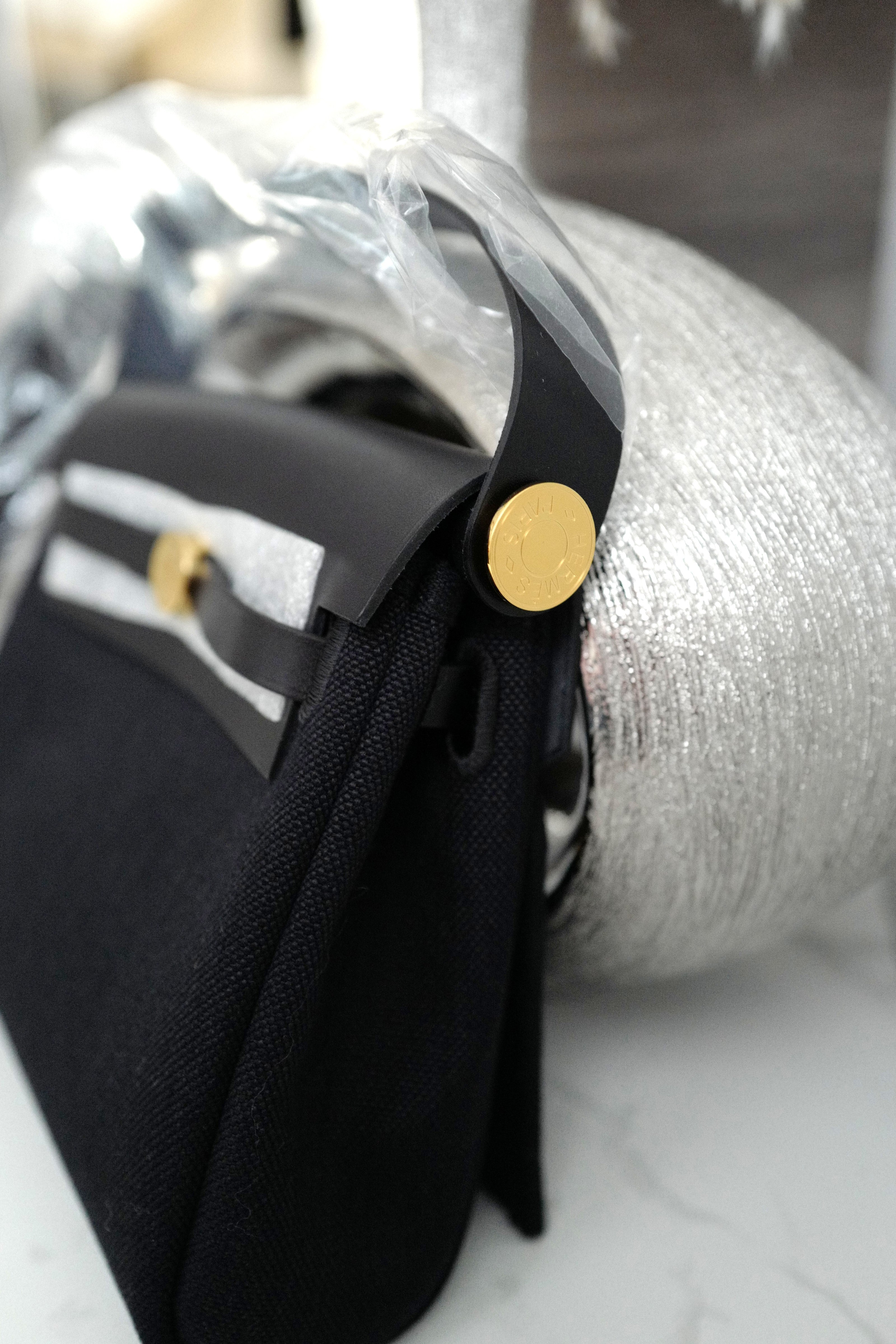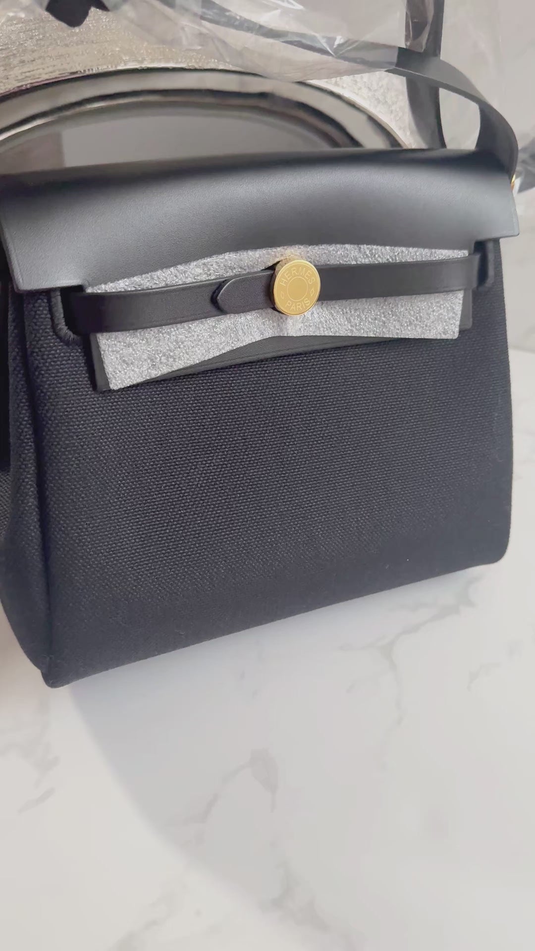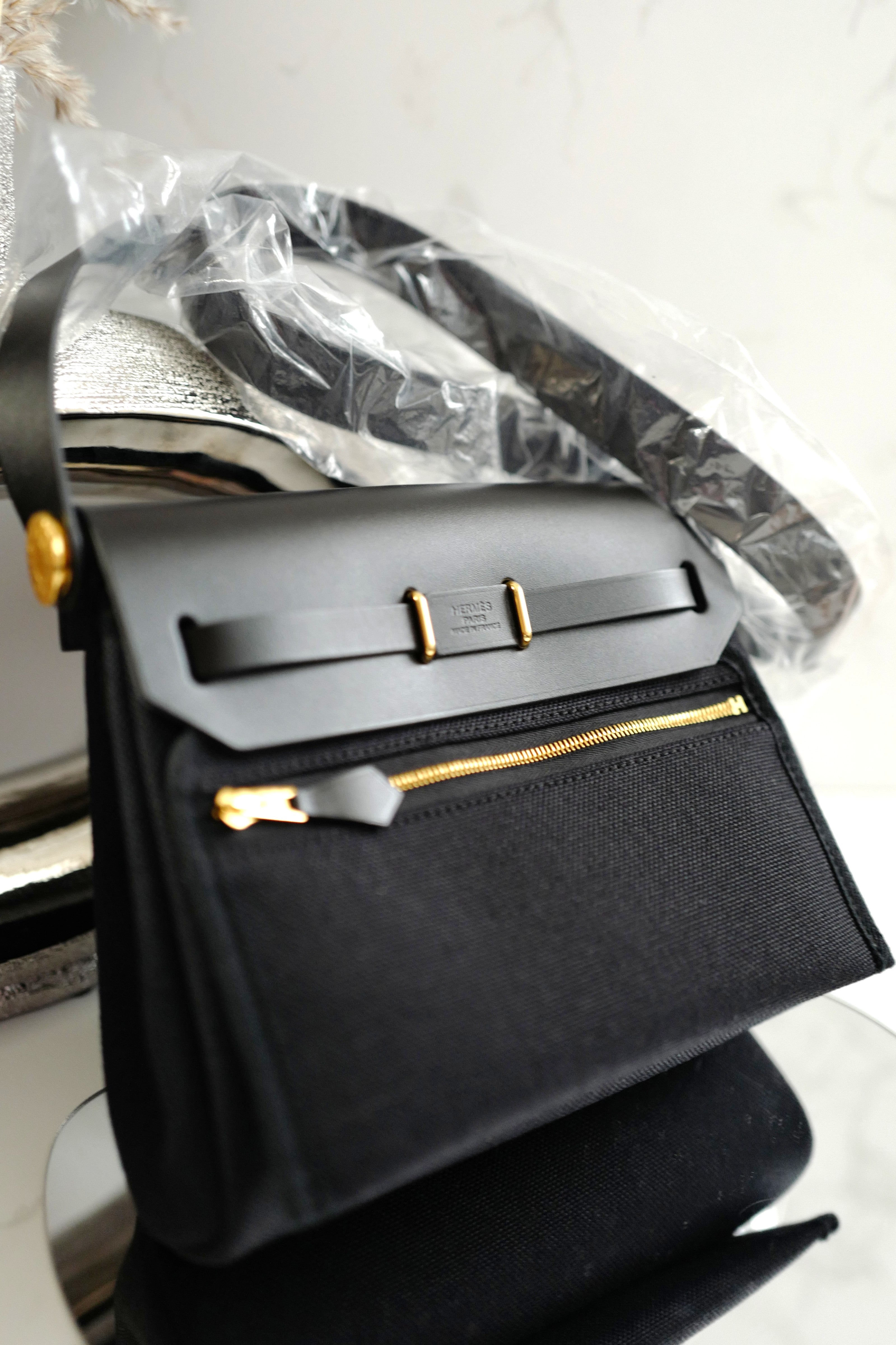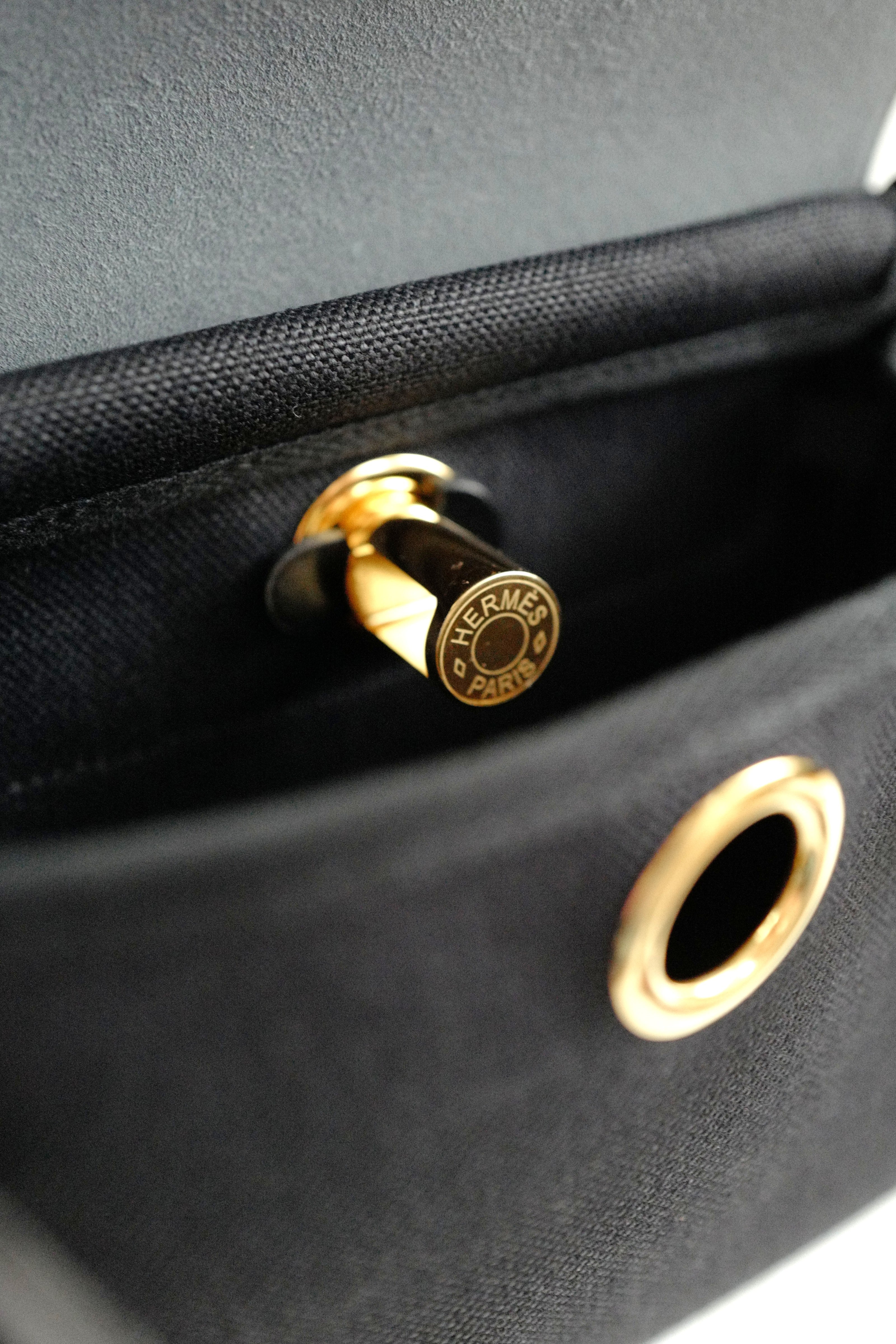 Hermes Mini Herbag Black / Black in Gold Hardware