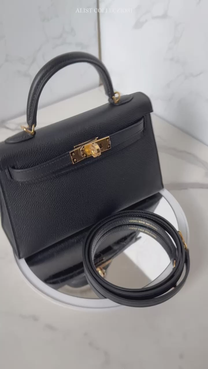 BNIB Hermès Mini Kelly 20 Black Epsom Leather with Gold Hardware Stamp W