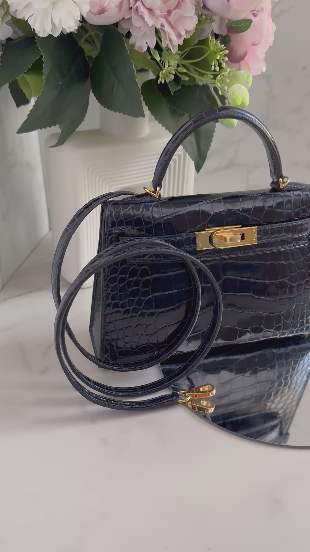 BNIB Hermes Mini Kelly Marine Shiny Crocodile GHW
