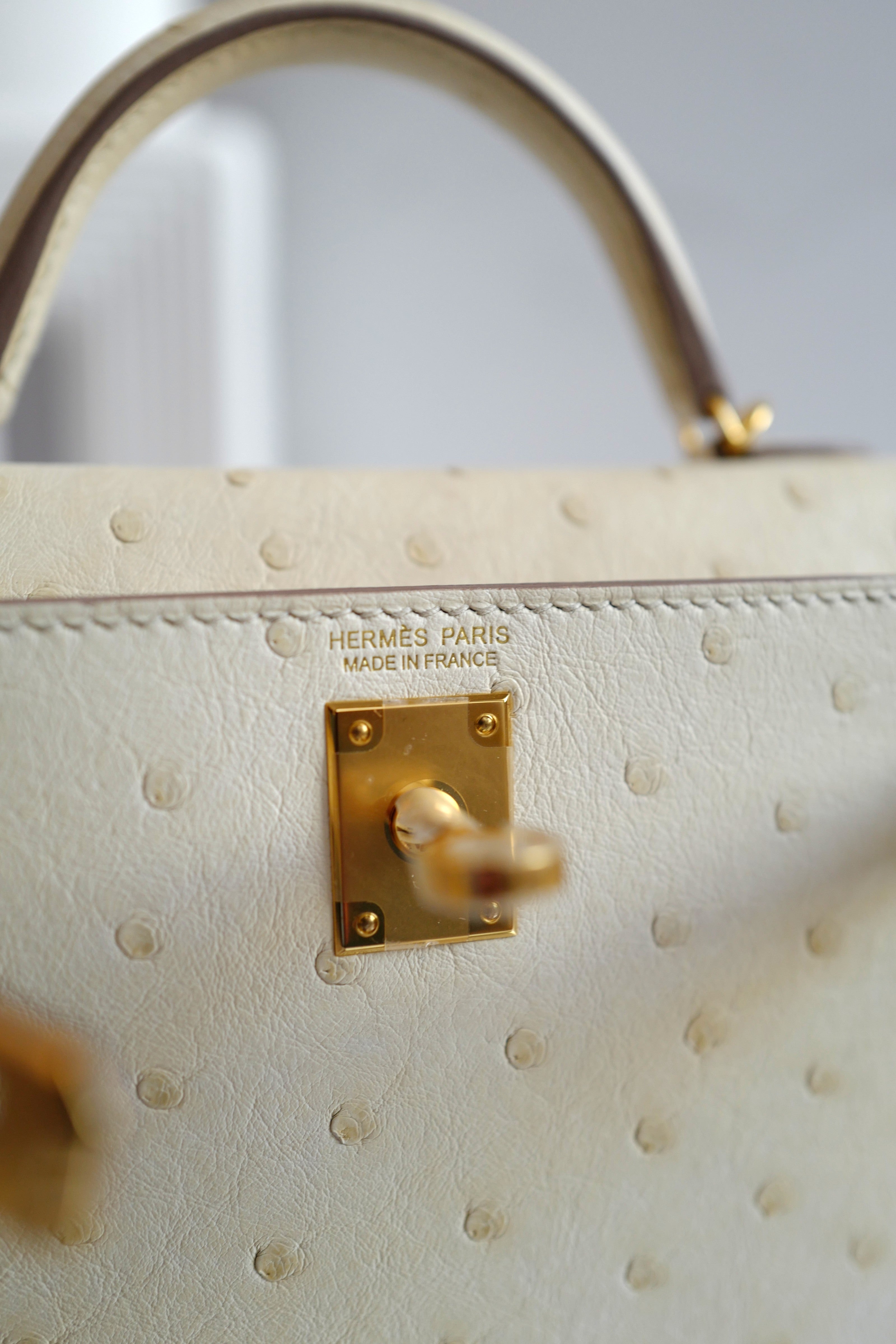 A refined blend of rarity, elegance, and craftsmanship, the Mini Kelly 20 in Ostrich Parchemin is a statement of timeless luxury—perfect for the discerning collector.