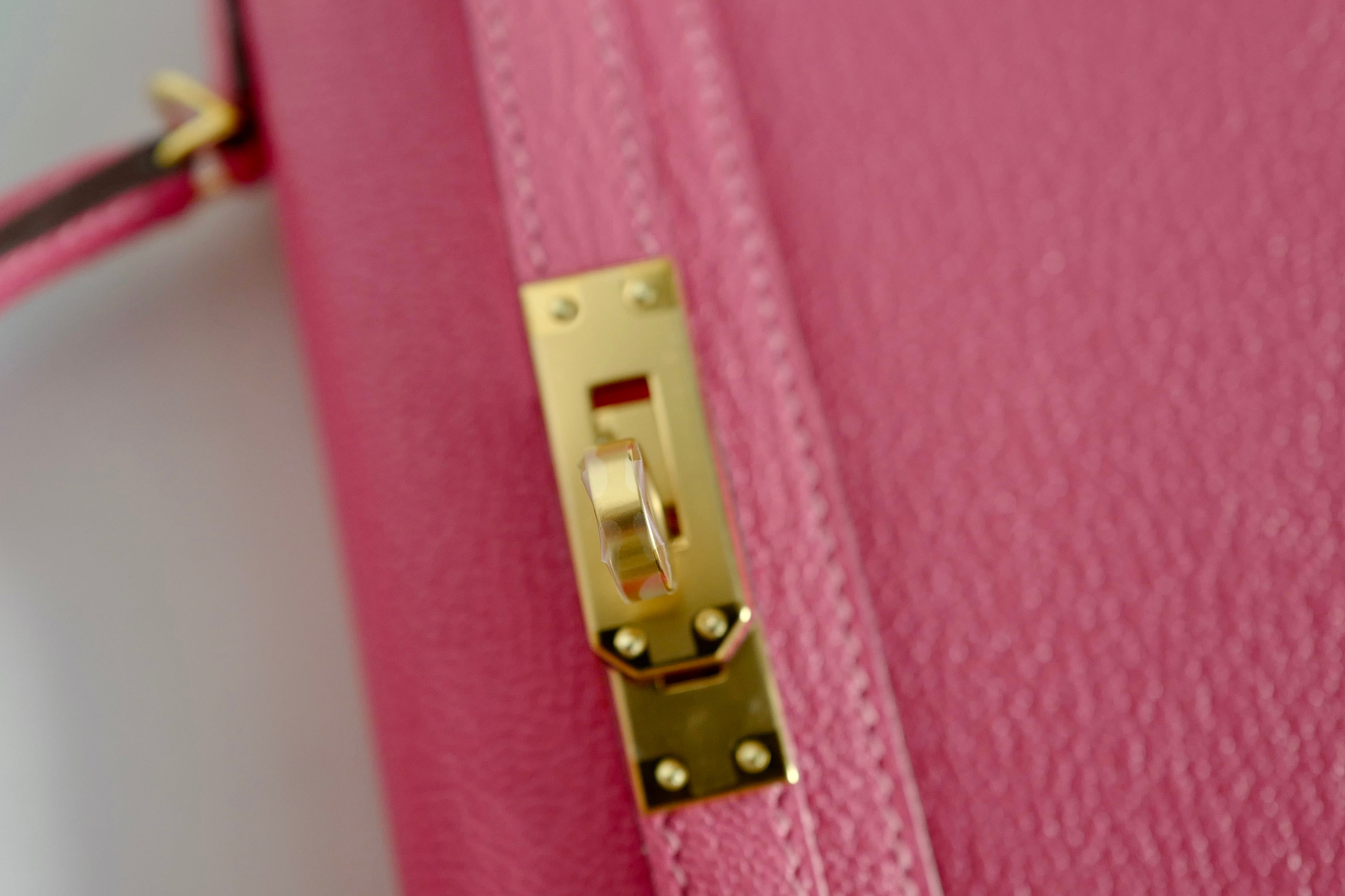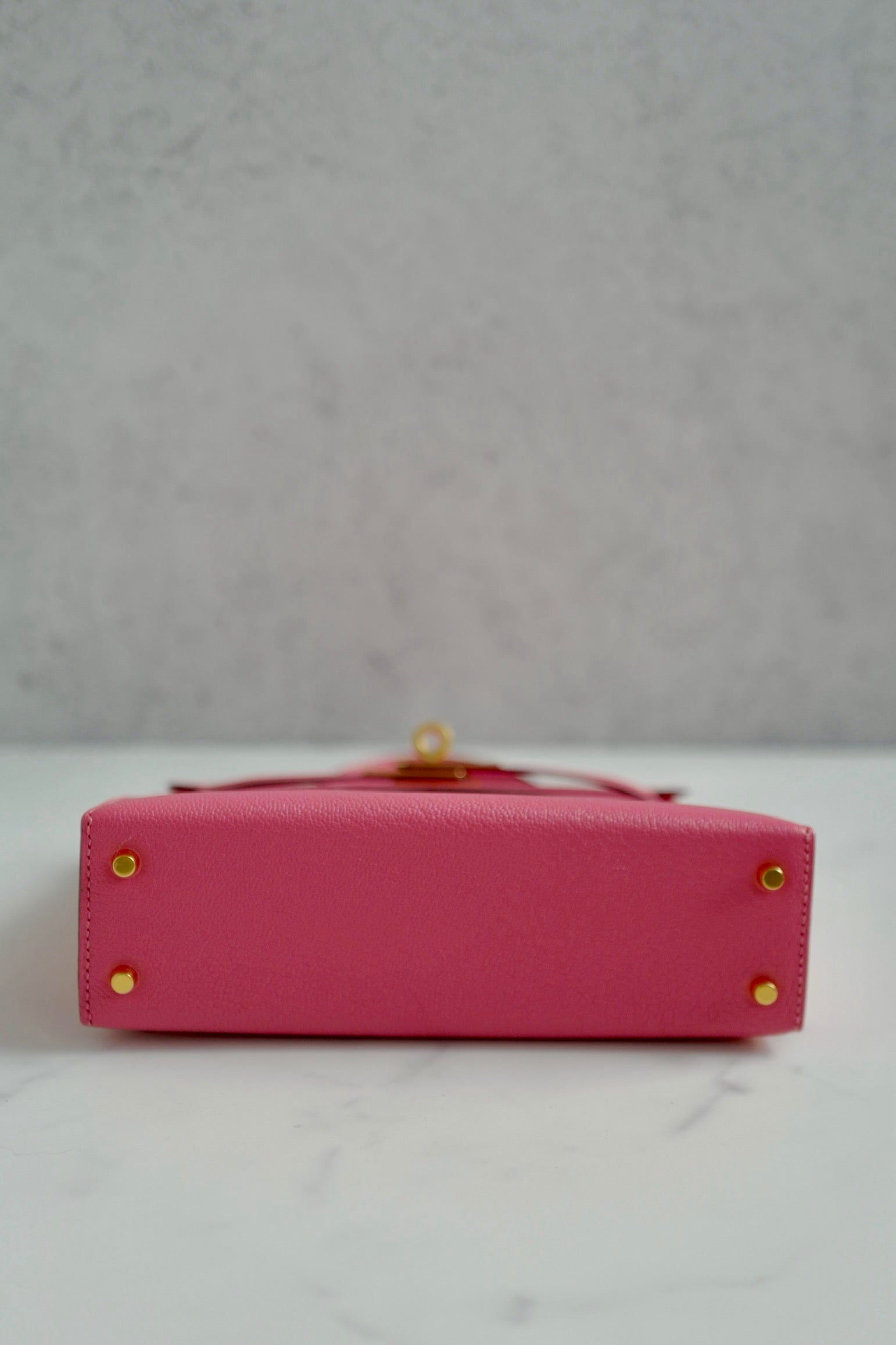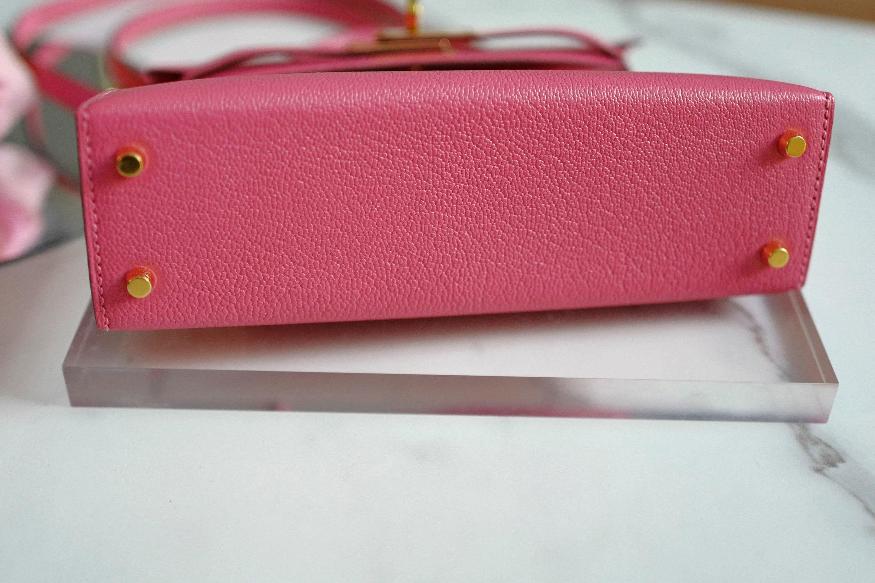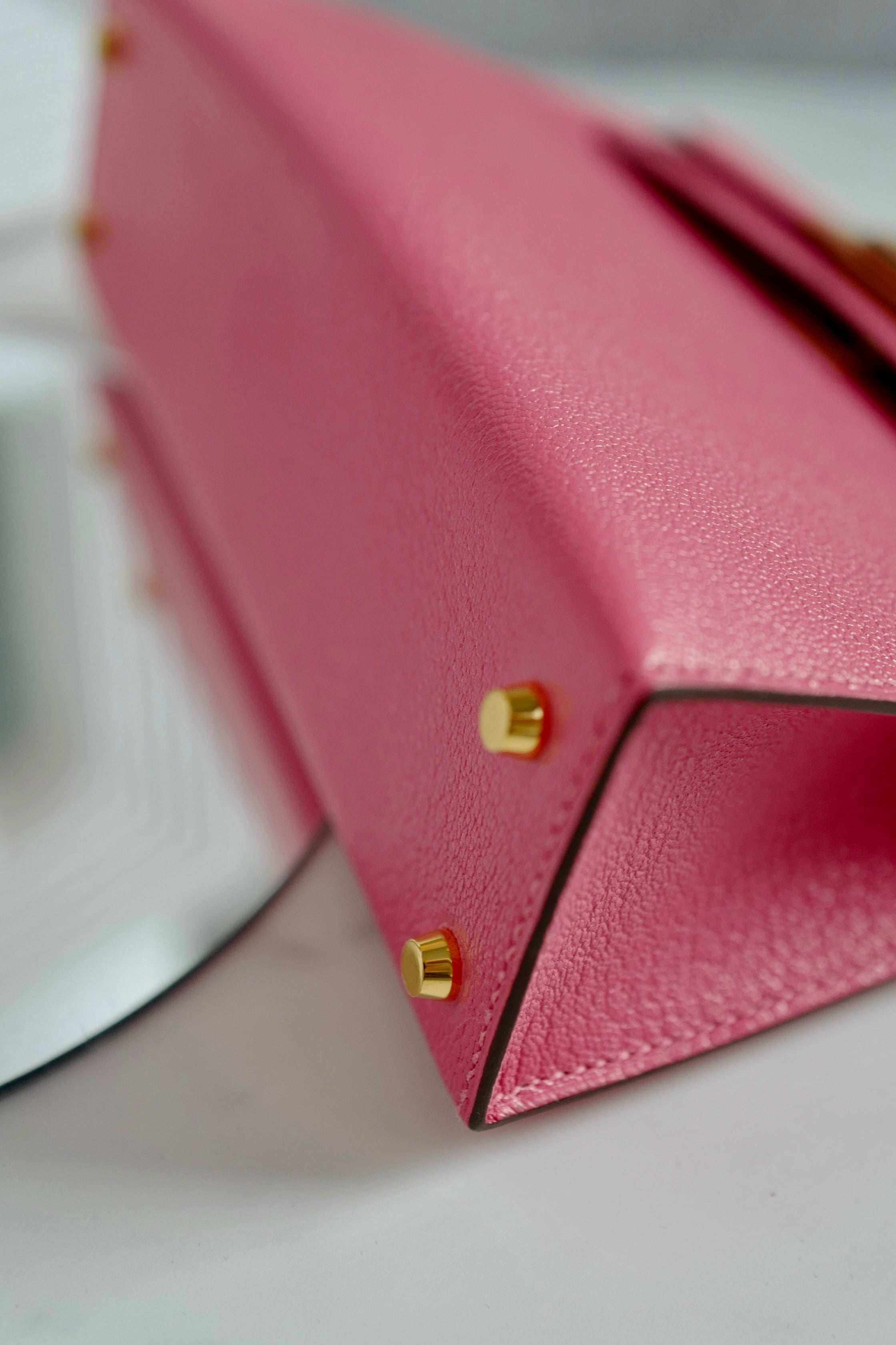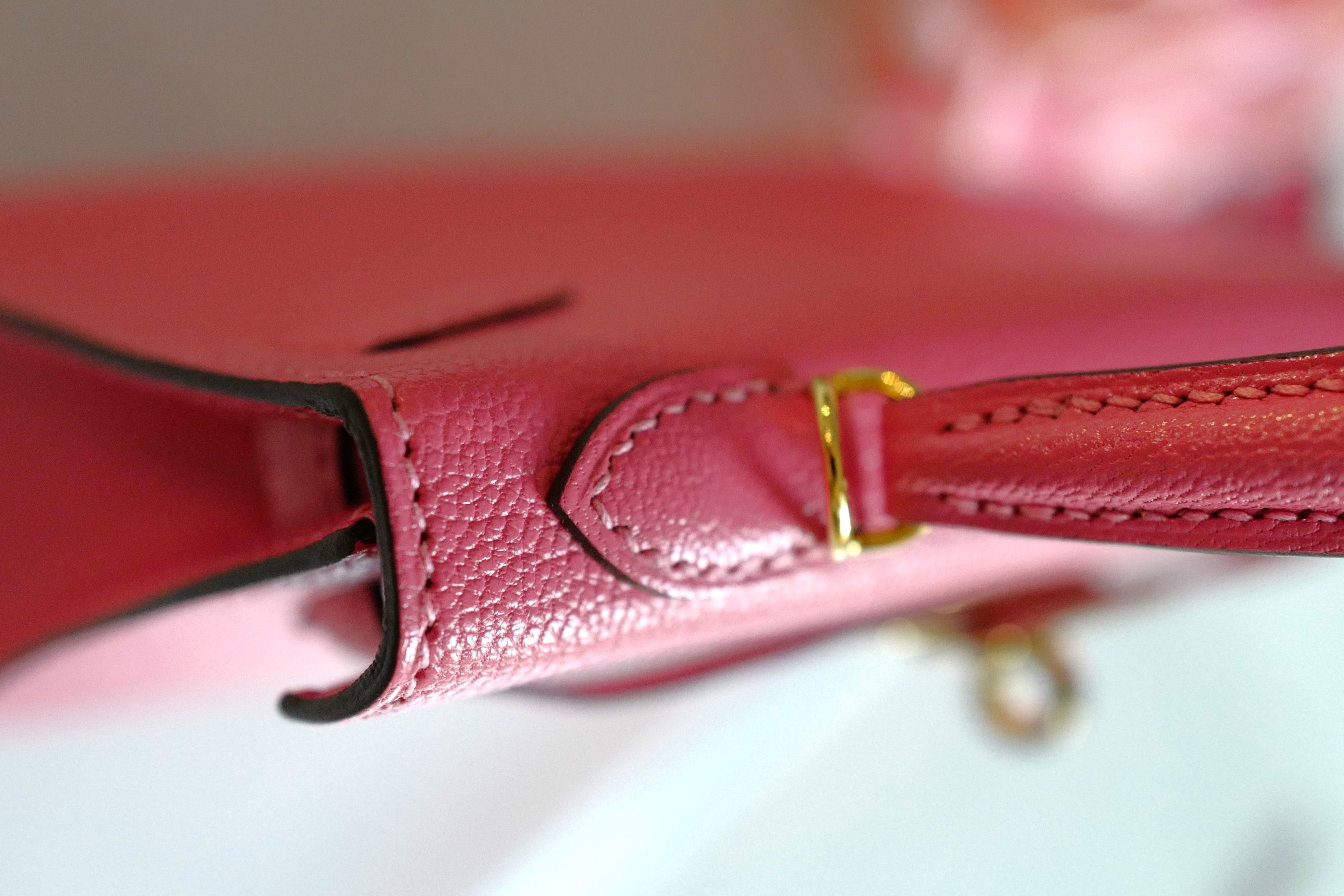Introducing the Hermès Mini Kelly in Rose Lipstick in Chèvre leather with Gold Hardware—a truly exquisite piece that embodies the timeless elegance and exceptional craftsmanship synonymous with Hermès.