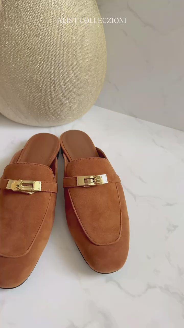 BNIB Hermès OZ Mule Velvet Goatskin Brun Amourette With Gold Hardware Size 39