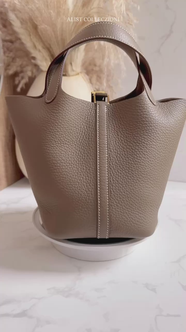 Versatile and stylish, this Picotin 18 is the ideal companion for any occasion. The neutral Etoupe shade pairs beautifully with the warmth of gold hardware, making it an elegant yet practical choice that seamlessly complements any wardrobe.