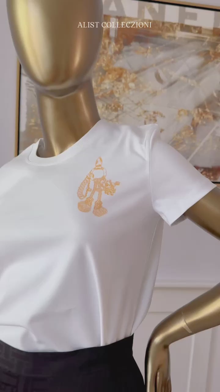 New Hermès Women’s Printed Straight T-Shirt White Blanc Size 34