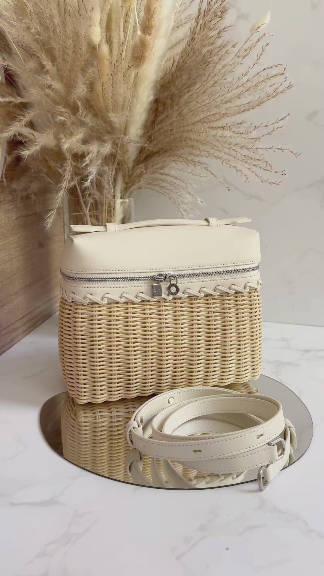 BNIB Loro Piana Extra Pocket L19 North-South Wicker Bag With Crossbody Strap