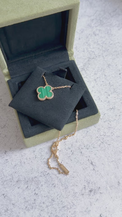 BNIB Van Cleef & Arpels Alhambra Malachite Pendant Necklace in 18k Yellow Gold