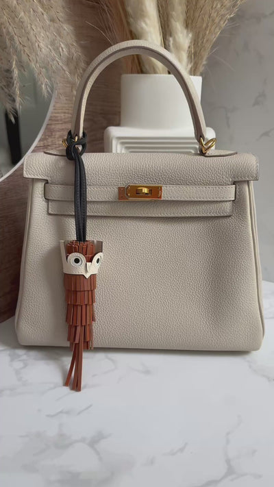 Product Story: The Chouette charm is more than just a decorative accent—it's a celebration of Hermès’ artisanal excellence. Introduced in the collections in 2005, Milo lambskin takes center stage in this piece. Named after the Venus de Milo, this leather is known for its natural beauty and elegant feel. With time, it becomes even more supple, perfectly molding to the shape it's designed for, making this charm not only beautiful but enduring.