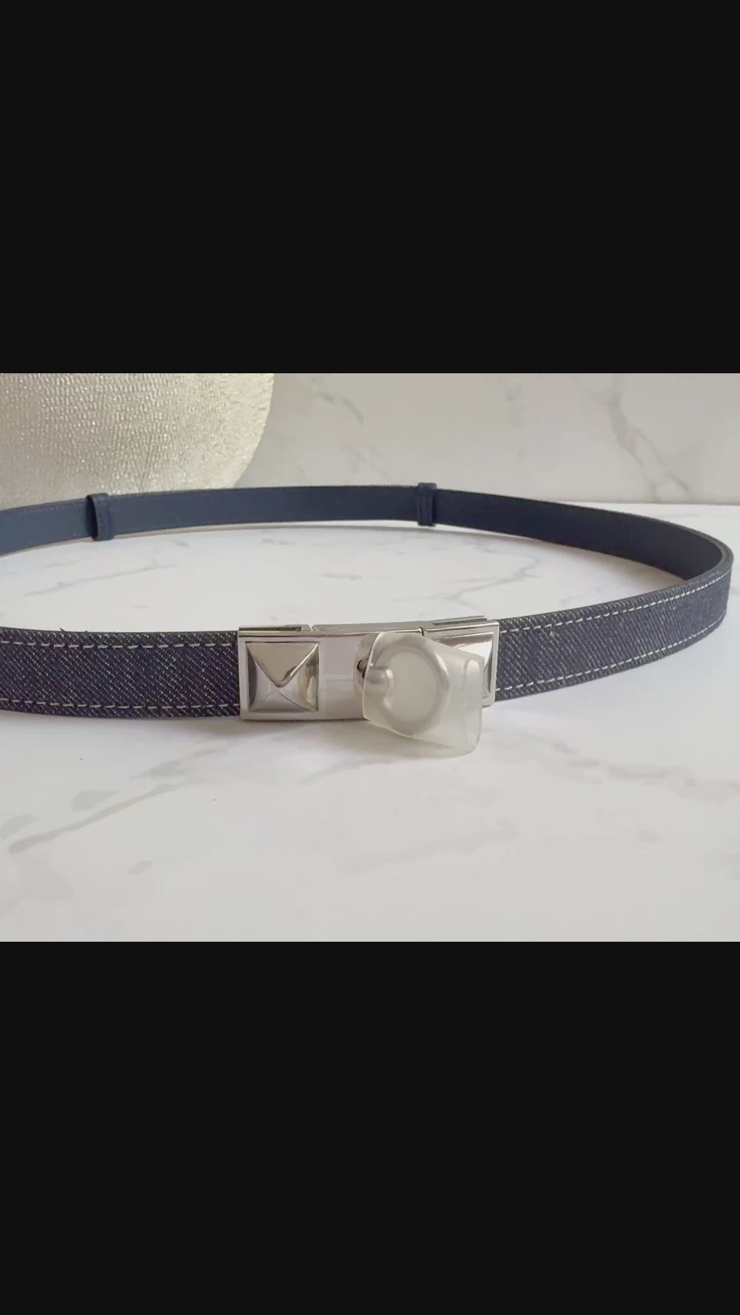 Where timeless elegance meets contemporary edge—the Rivale Jean 18 Belt is a striking fusion of luxurious Epsom calfskin and refined denim, offering a bold yet versatile statement. Designed for the modern woman, this belt in a sophisticated trio of Bleu Indigo, Blanc, and Bleu Navy adds a subtle contrast that enhances any outfit.