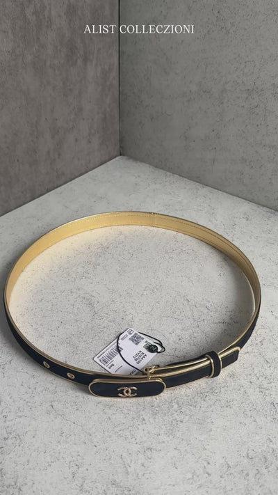 Chanel 24S Women's Leather Belt in Goatskin, Lambskin & Metal Black & Gold 80