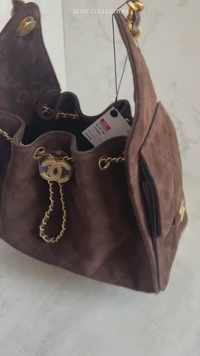 Chanel 25K Small Hobo Bag Dark Brown Suede with Gold Hardware