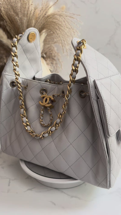 NEW CHANEL 2025 25B Small Hobo Bag Grained Calfskin Pale Grey
