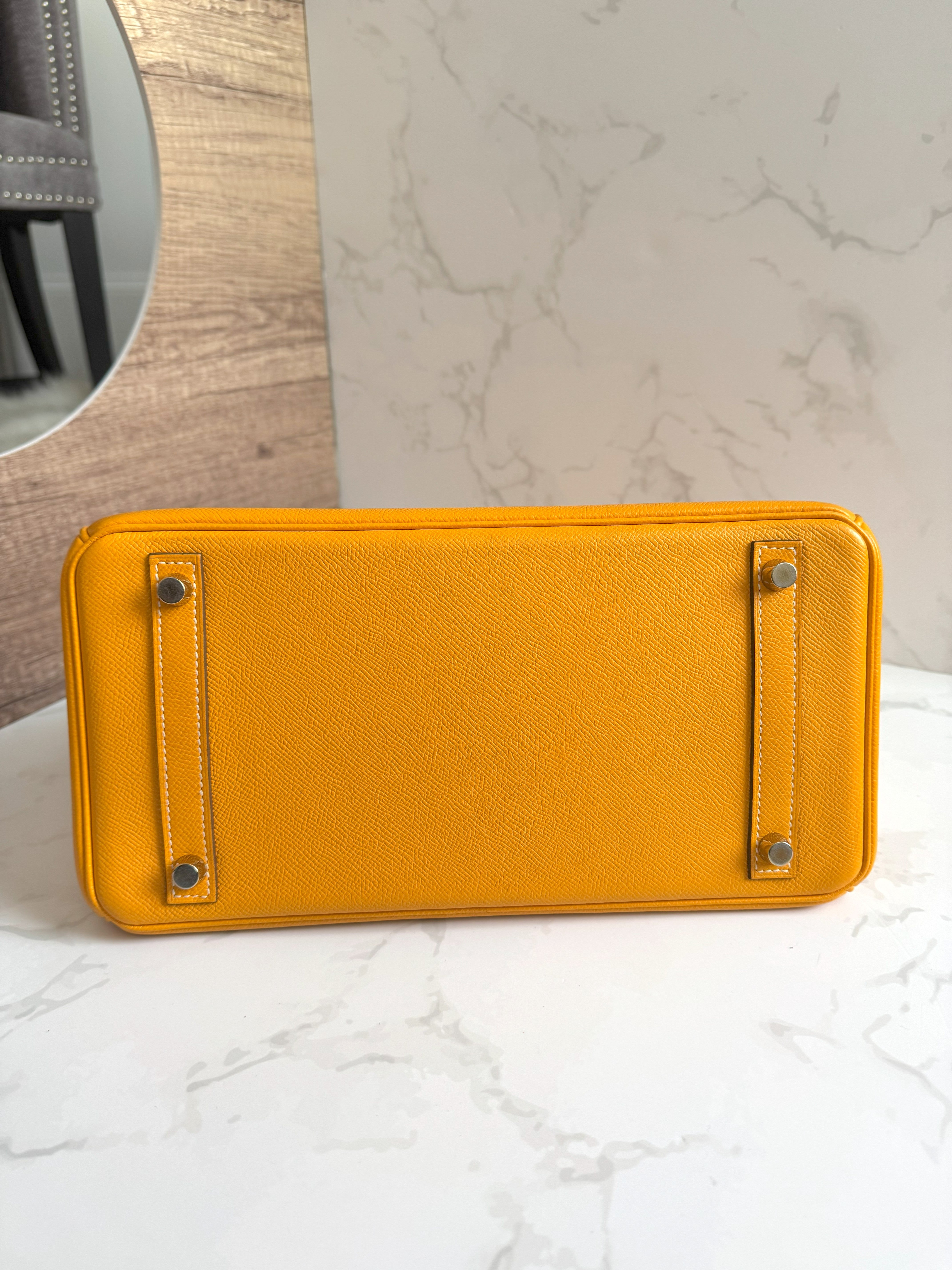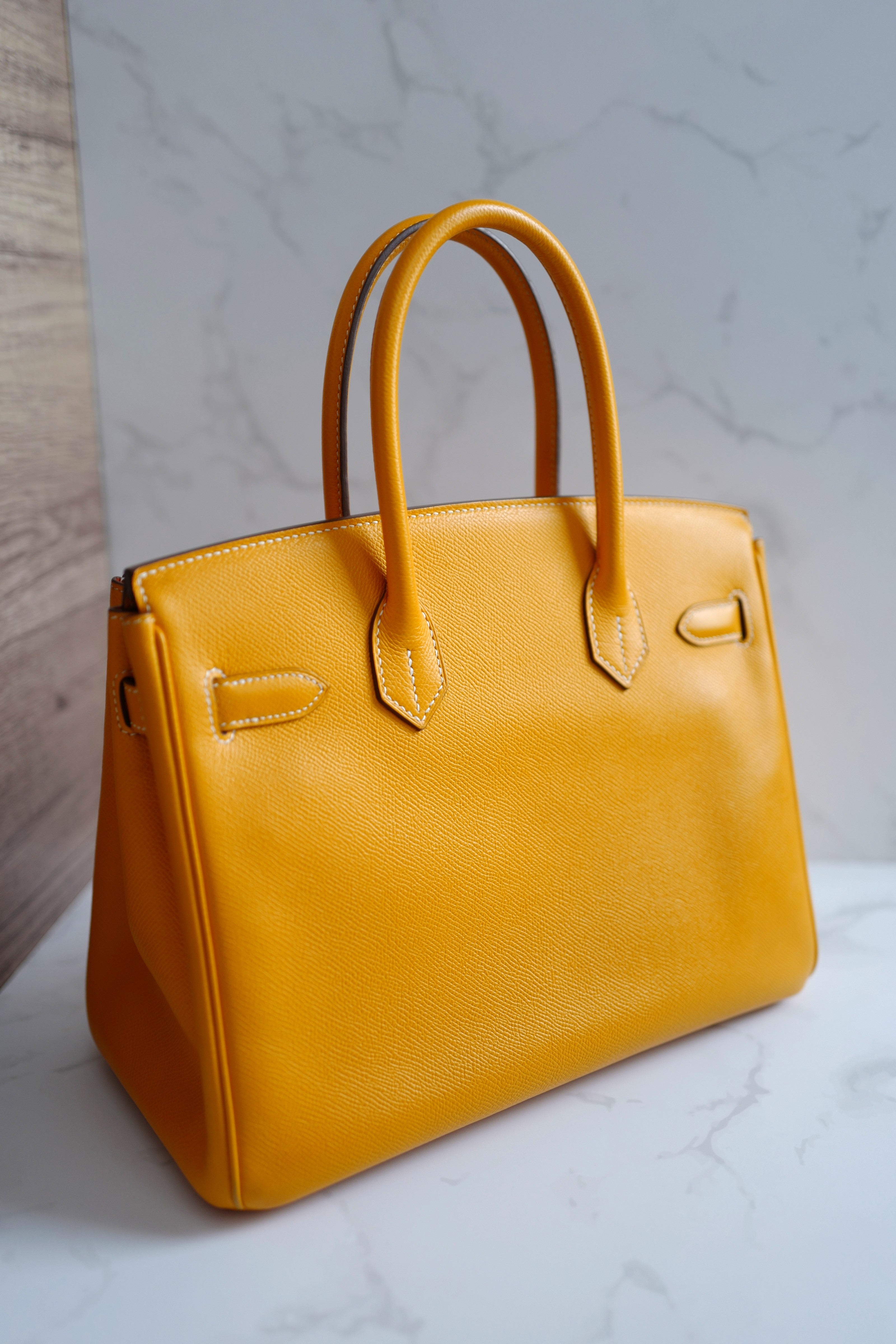 Hermès Birkin 30 Jaune d'Or Epsom Leather Candy Edition Orange Inside & Gold HW