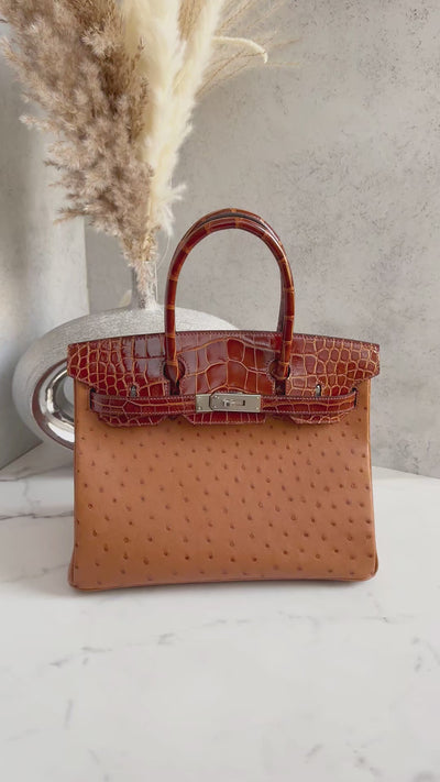Hermès Birkin 30 Touch in Miel Ostrich & Alligator with Palladium Hardware