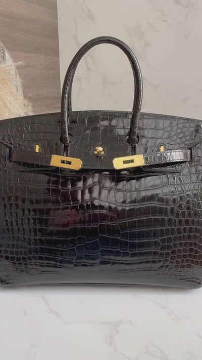 Hermès Birkin 35 – Black Shiny Porosus Crocodile with Gold Hardware (D Stamp)