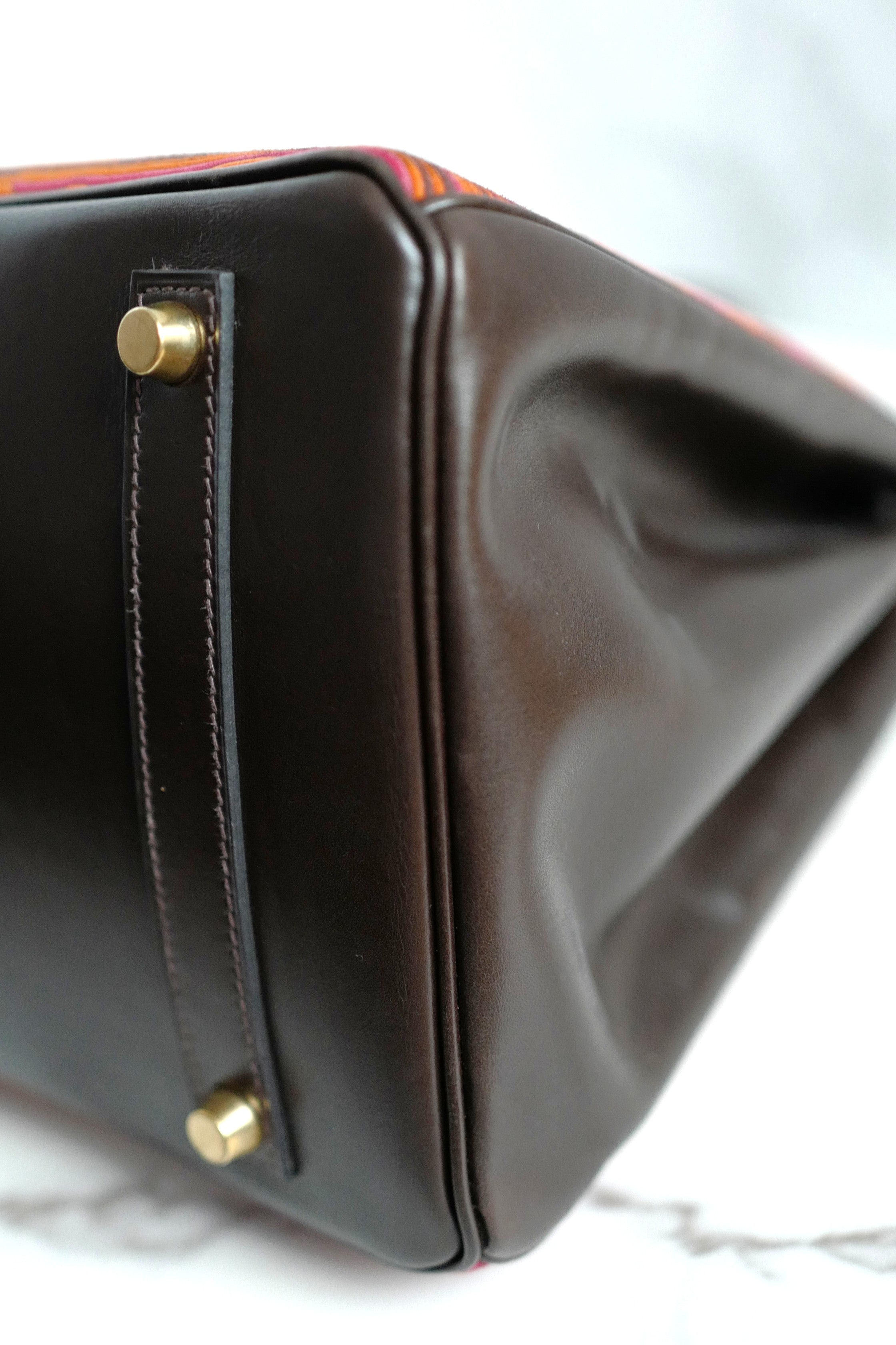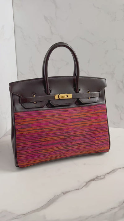 HERMES Birkin 35 Vibrato In Orange/Fuchsia With Havanne In Box Calfskin Gold HW