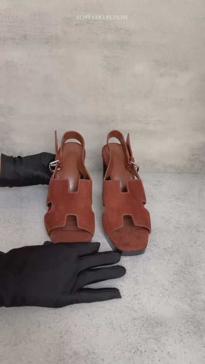 Introducing the high heel sandal in suede goatskin featuring the iconic "H" cut-out detail. Crafted for a chic and feminine style, these heels exude elegance and sophistication. With just the right heel height, they offer a perfect balance between sexy and refined. The neutral color adds versatility to your wardrobe, allowing you to effortlessly transition from work to meetings with confidence. Step into these heels and command attention wherever you go, asserting your authority and style with every stride.