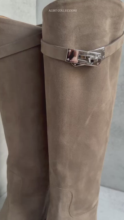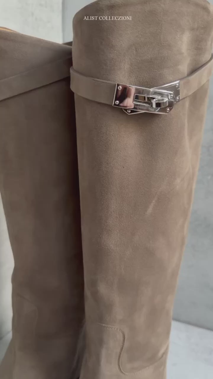 The Hermès Jumping Supple Boots in Étoupe suede goatskin are a refined expression of the house’s equestrian heritage. Crafted from ultra-soft, flexible suede, the boots offer a relaxed yet elegant silhouette that naturally molds to the leg. The neutral Étoupe color brings timeless sophistication, making this pair effortlessly versatile for both casual and elevated styling.