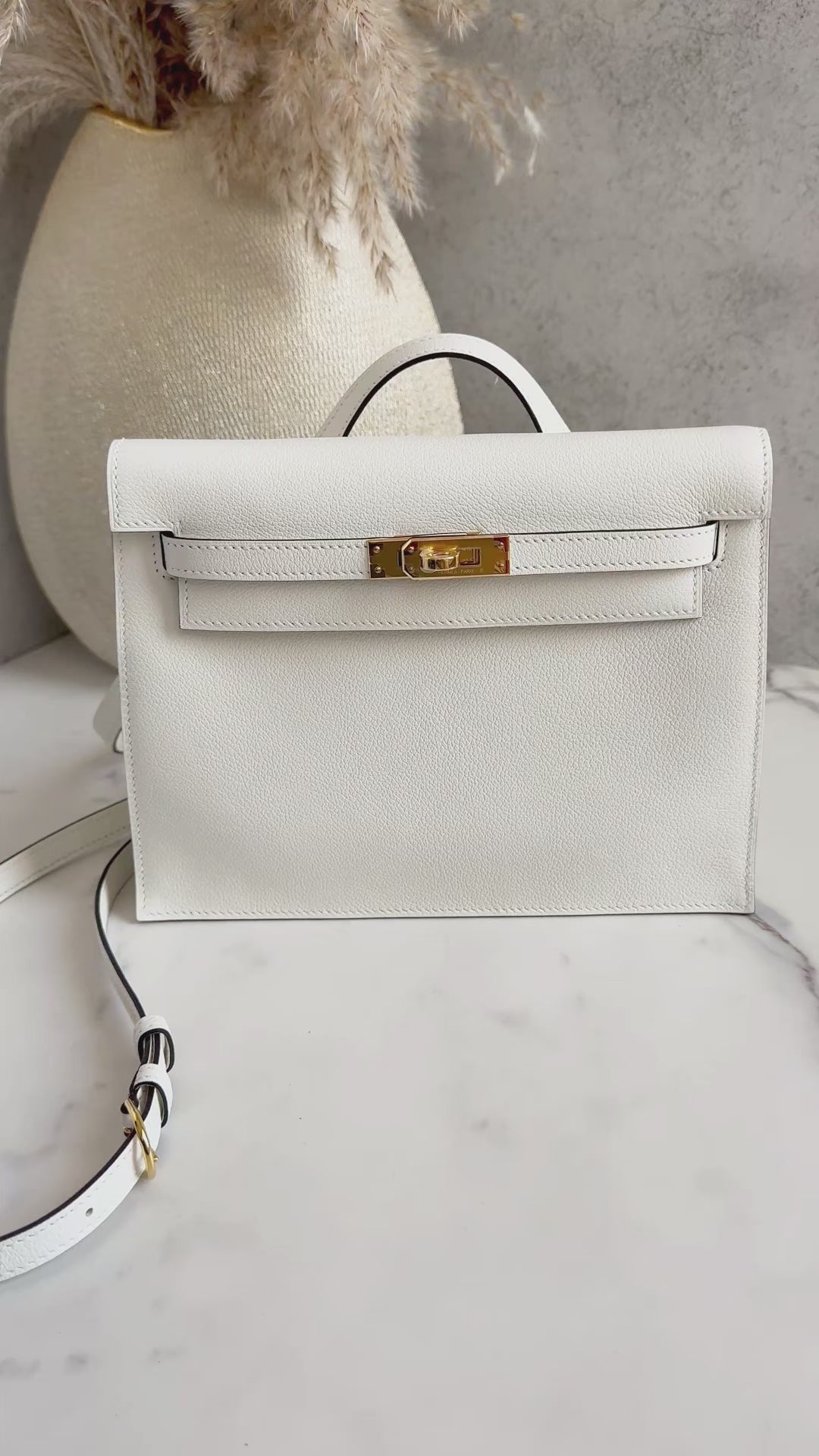 Hermès Kelly Danse in Blanc, Verso Kraft with Gold Hardware