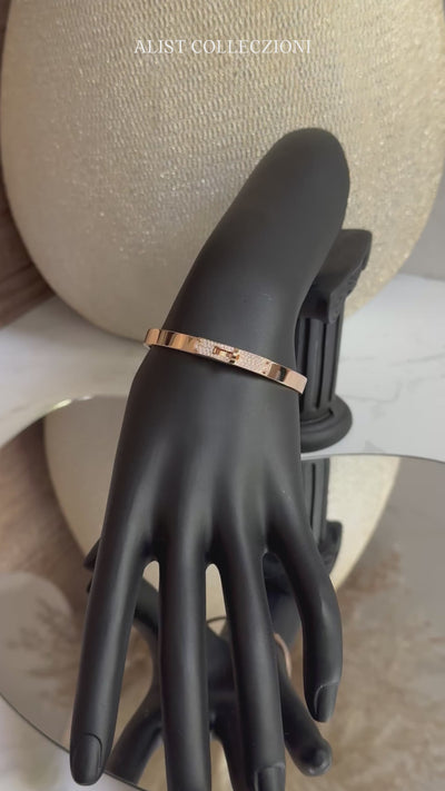 Set with 61 brilliant diamonds totaling 0.36 carat, each stone adds a subtle yet captivating sparkle that elevates the piece without overpowering its clean architectural lines. The diamonds catch the light effortlessly, creating a graceful shimmer that complements the warm glow of rose gold. This balance of brilliance and restraint makes the bracelet suitable for both day and evening wear.