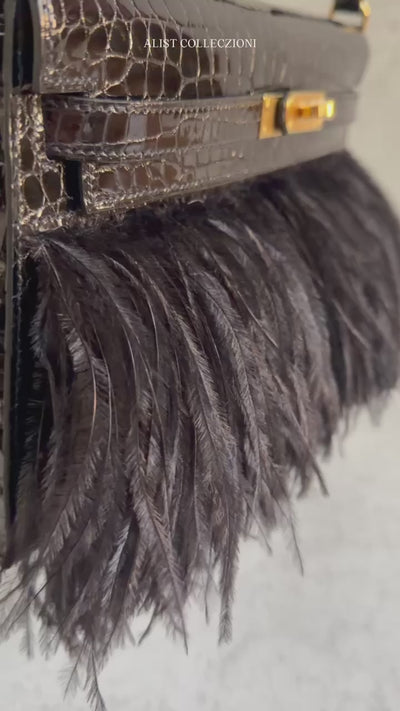 - Material: Exterior: Crocodile Porosus Lisse | Trim: Ostrich Feathers (Plume d'Autruche)