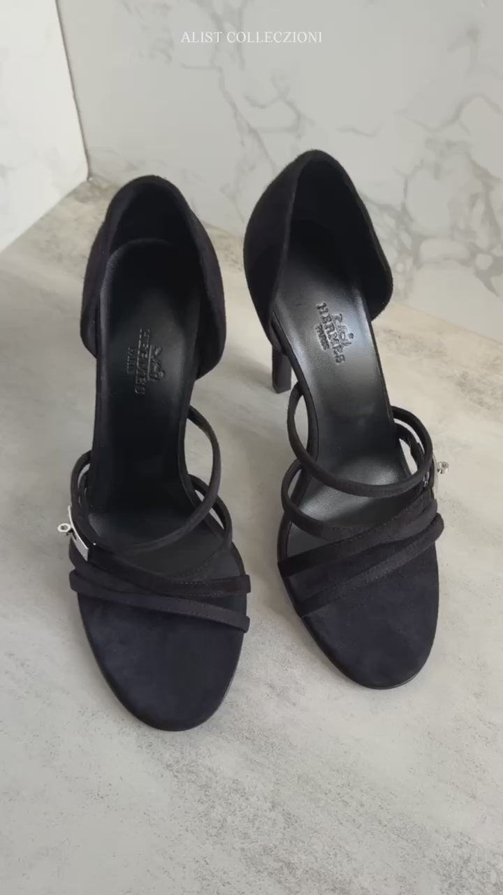 Hermès Lipstick 105 Sandal Noir Black Suede Strappy High Heels Size 37
