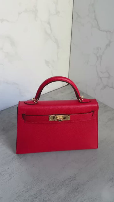 This exquisite Hermès Mini Kelly in Rouge De Coeur is a stunning and highly coveted piece, crafted in luxurious Madame leather and finished with elegant gold hardware. The color is a rich, vibrant red that stands out beautifully while remaining timeless and sophisticated. Its structured silhouette and refined texture make it one of Hermès’ most desirable mini bags.