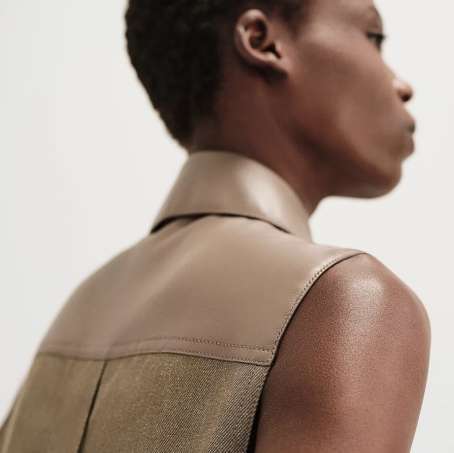 Hermès Sleeveless Jacket SS25 with Leather Details - Size 38