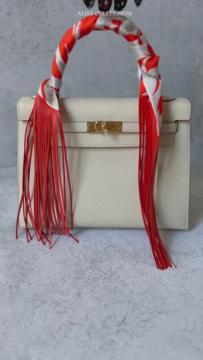 Hermès Twilly Bouquet Final Silk Gris Perle Vermillon with Leather Fringe