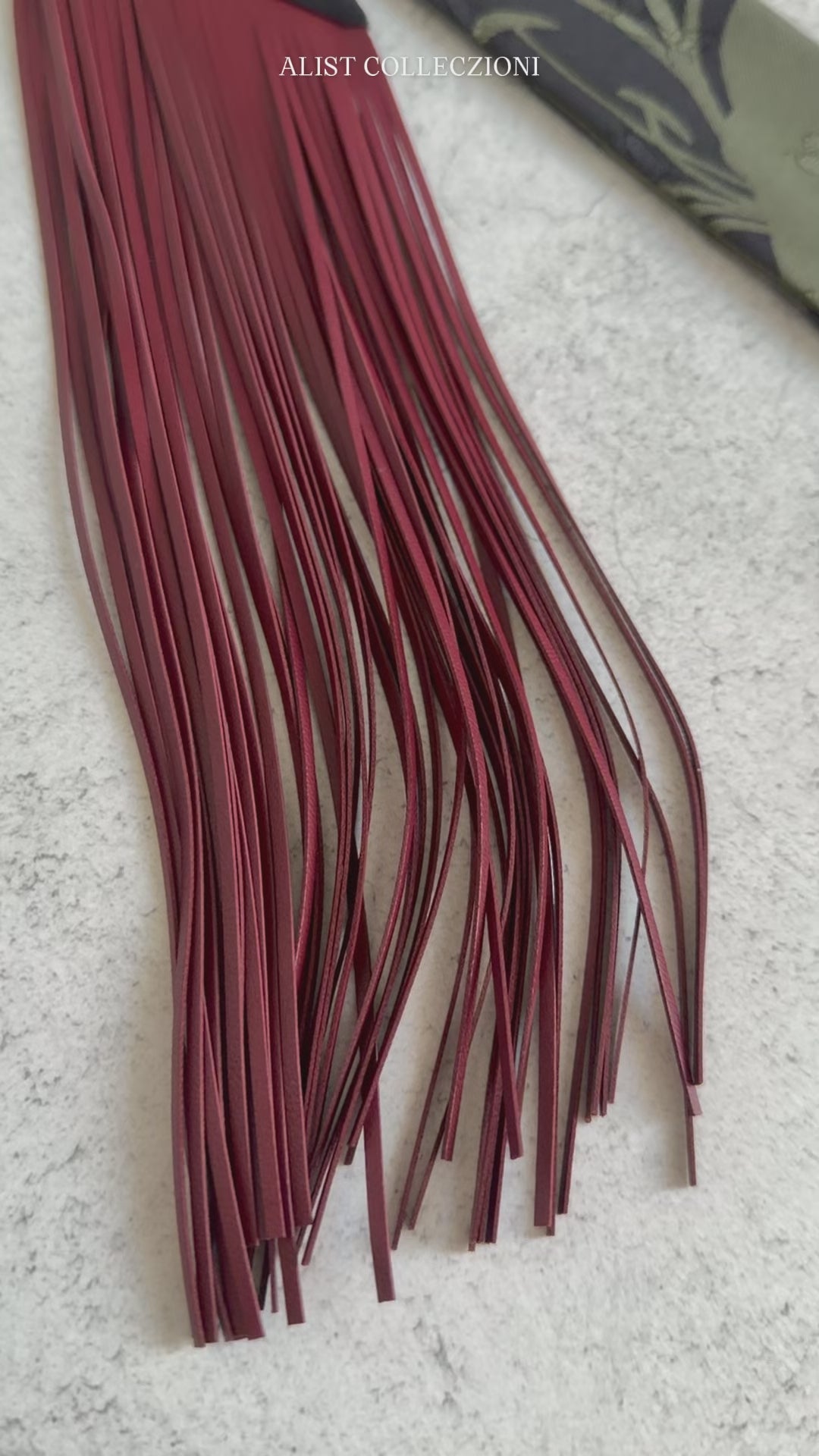 - Material: Silk Twilly with leather fringes (100% silk ribbon + leather)