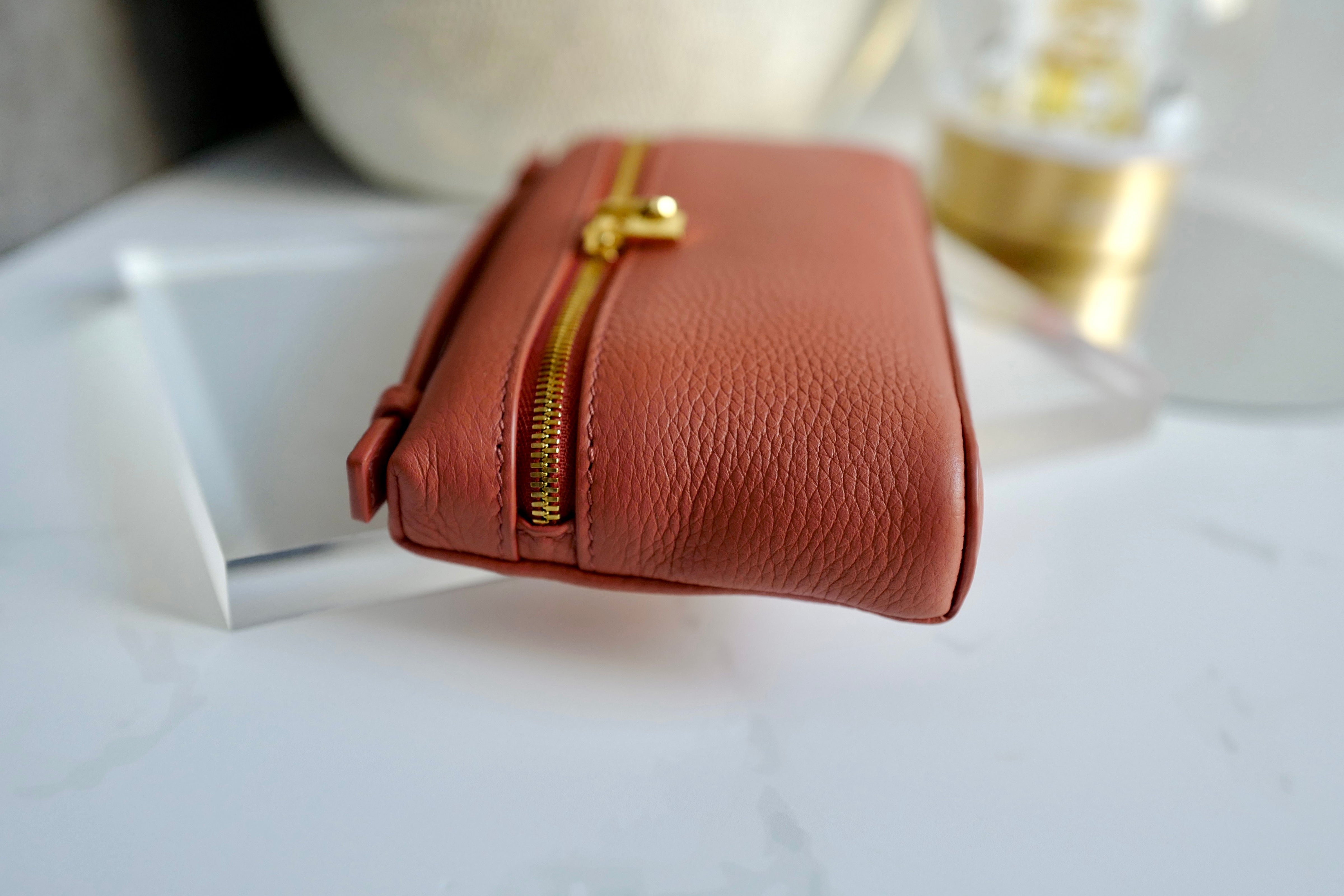NEW Loro Piana Extra Pocket Mini Pouch 30HL Coral Fiction Gold Grained Calfskin