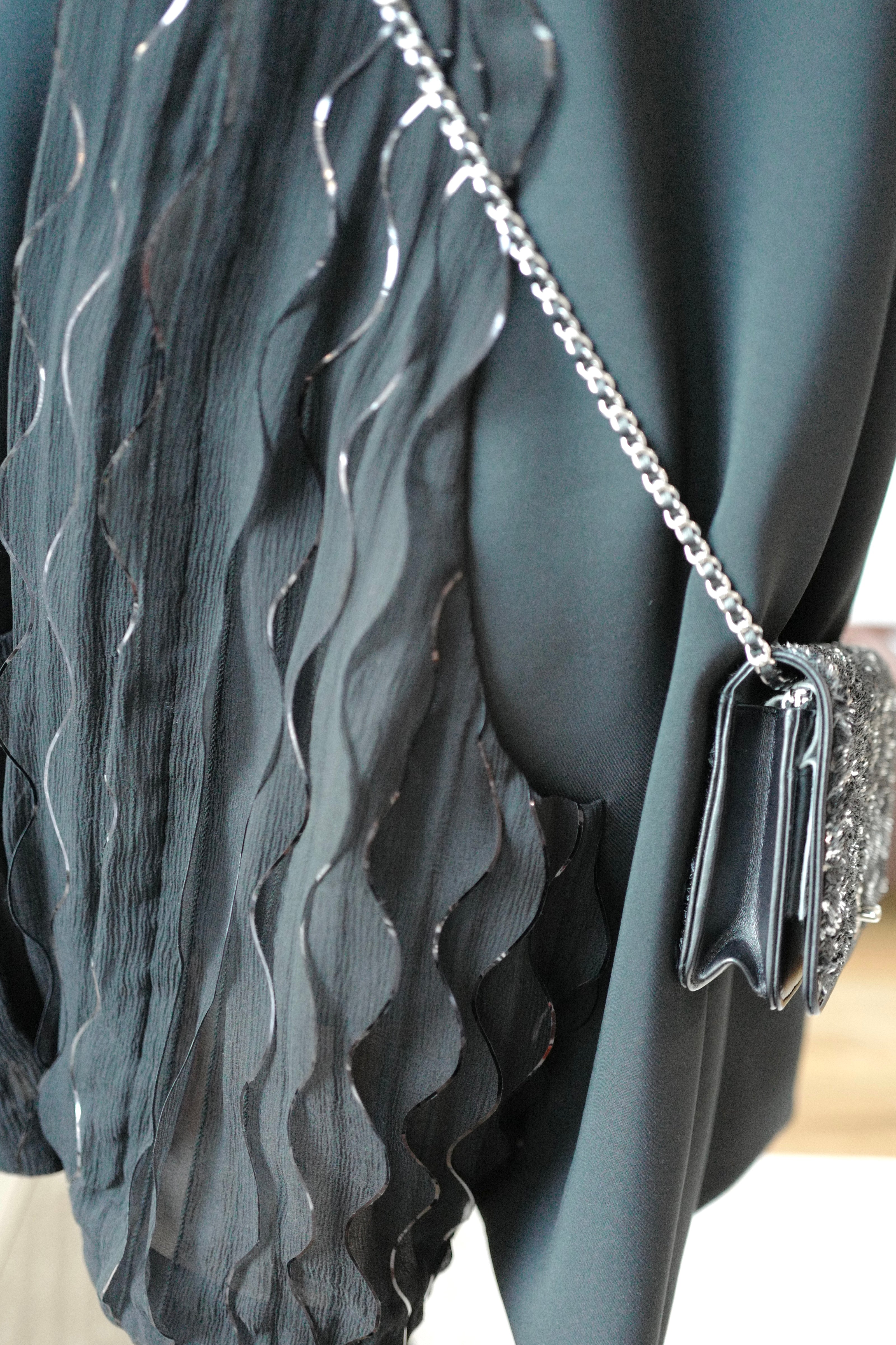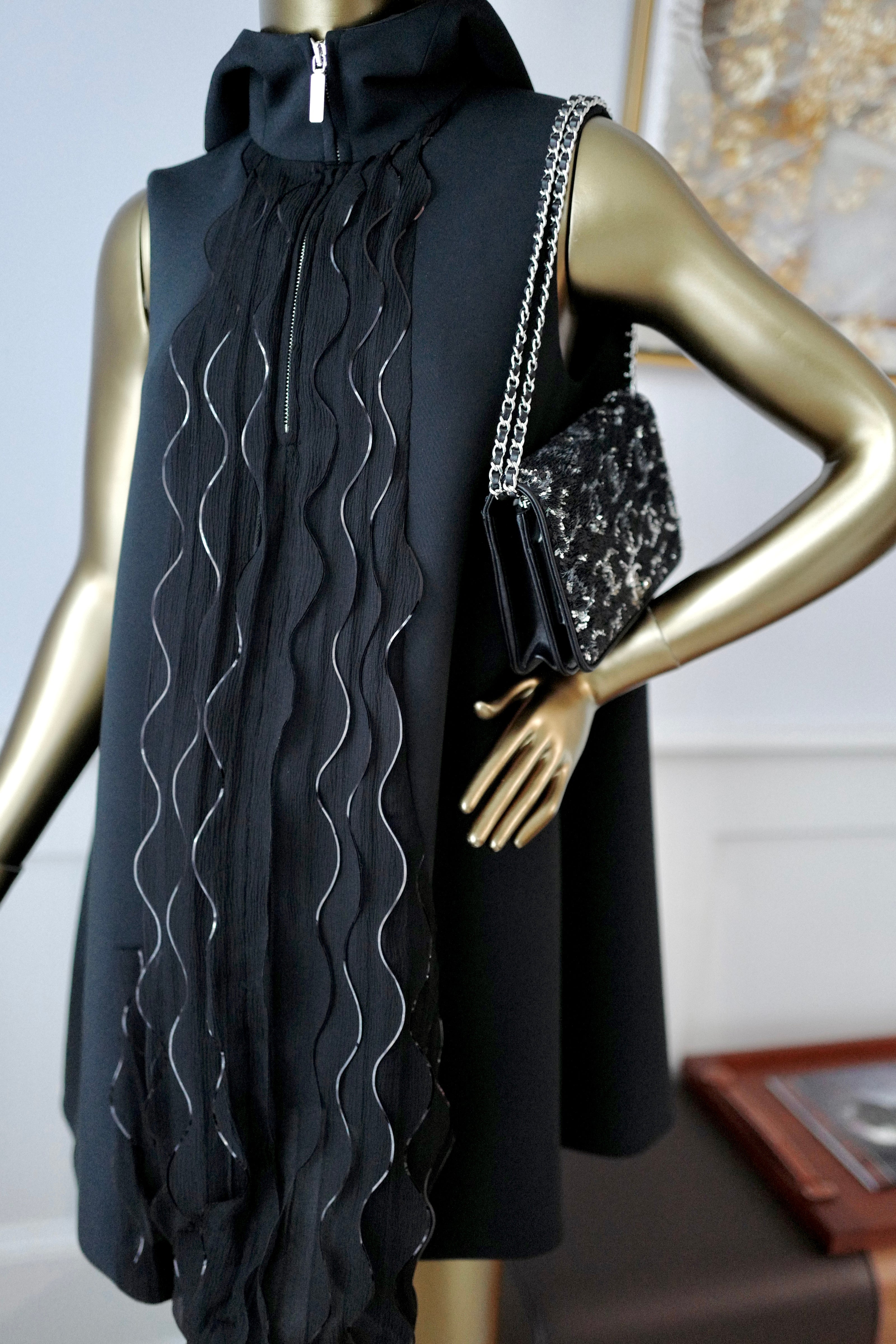 NEW Chanel 25S Black Dress Shimmery Pleated With Hoodie Size 36 Less Than Retail
