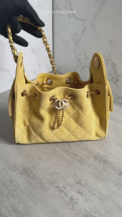 NEW Chanel 26C Mini Hobo Shoulder Bag in Yellow Suede with Gold Hardware