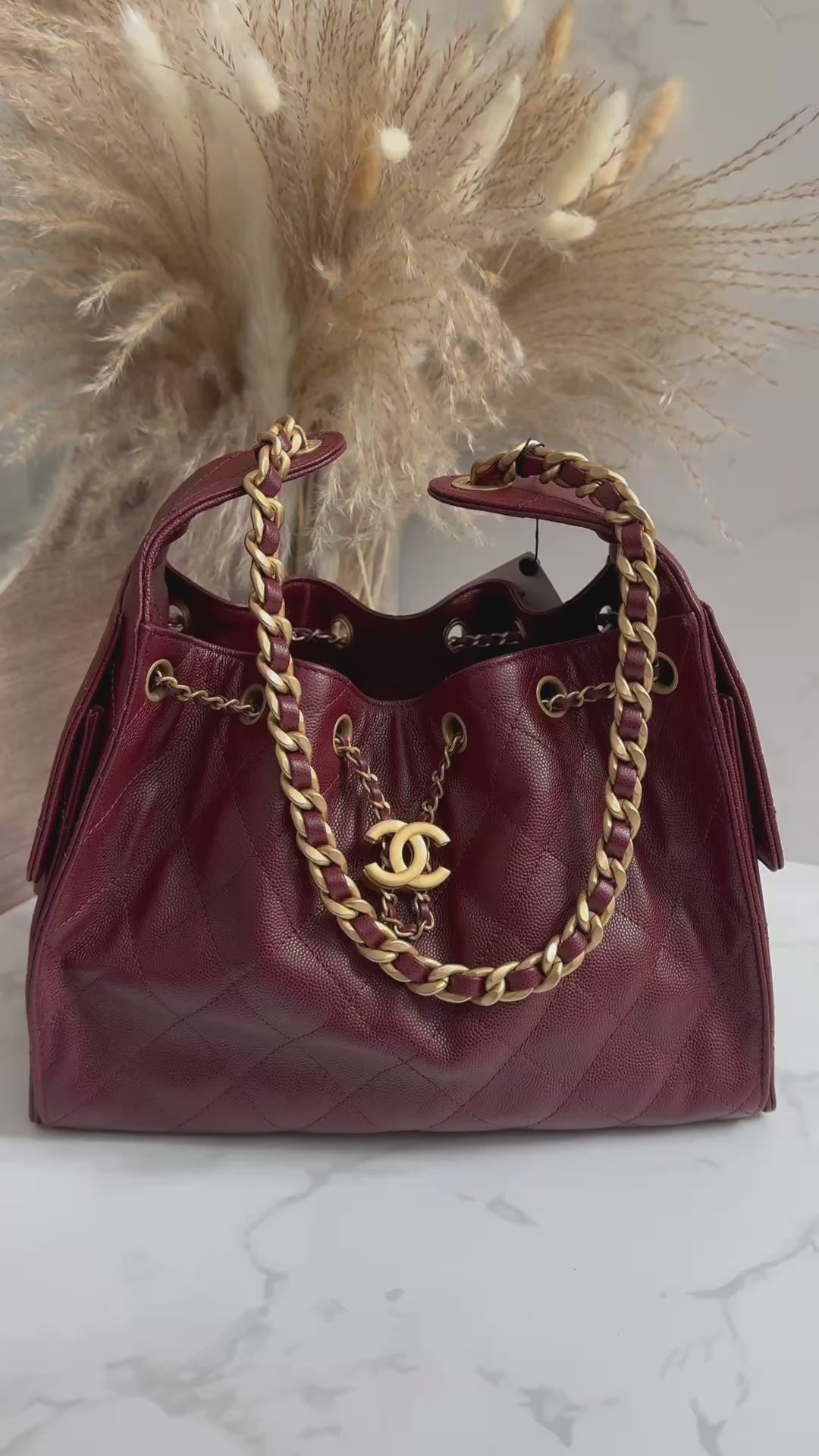 NEW CHANEL Spring-Summer 2025 25S Small Hobo Bag Grained Calfskin Burgundy