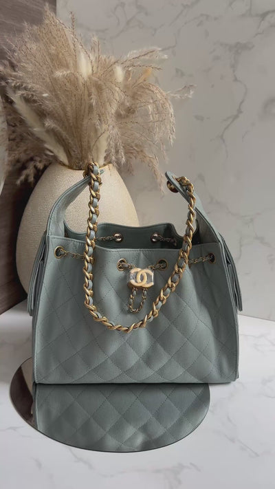 NEW CHANEL Spring-Summer 2025 25S Small Hobo Bag Grained Calfskin Light Green