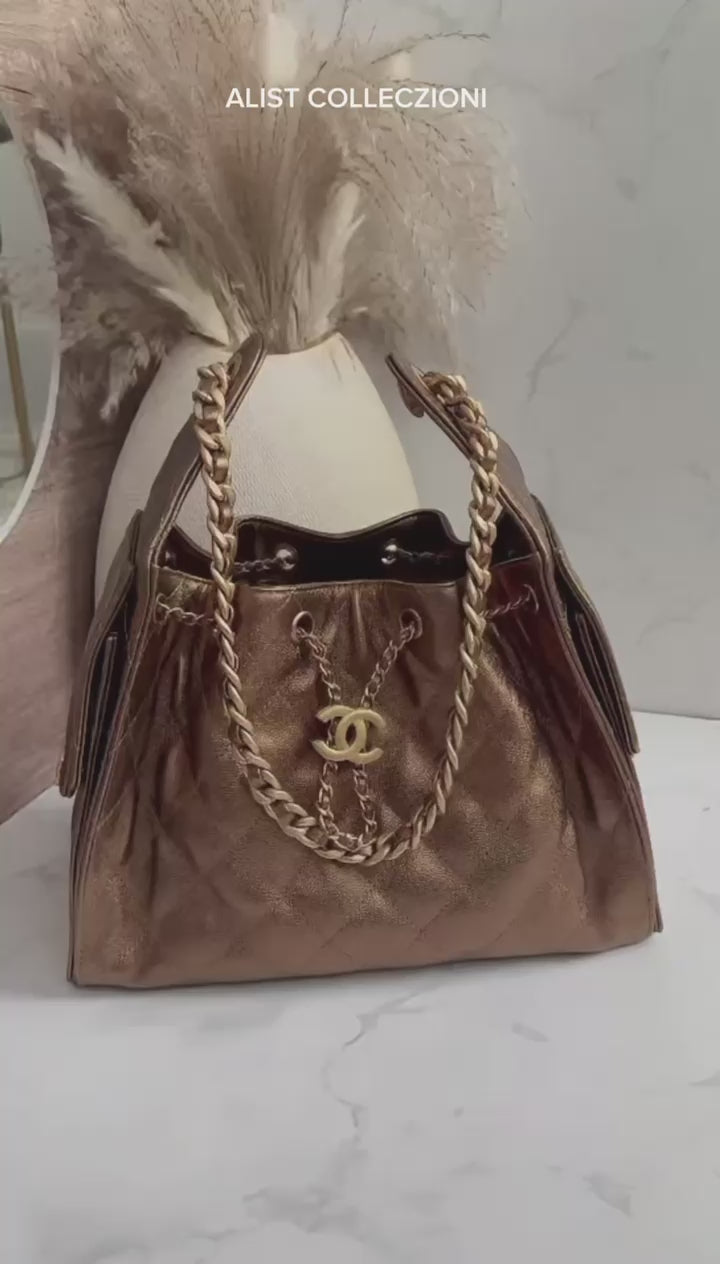 NEW CHANEL Spring-Summer 2025 25S Small Hobo Bag Metallic Grained Calfskin Bronze