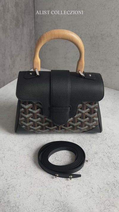 NEW Goyard Saigon Souple Mini Bag in Black Palladium HW with Beech Handle