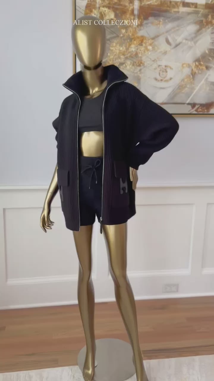 NEW Hermès Blouson Cardigan H Pockets Black Size 36 Wool Jacket